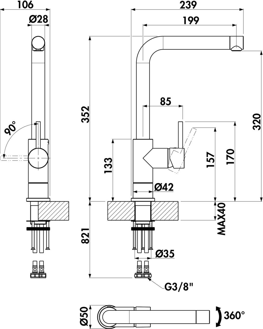 Die Küchenarmatur Arco 5 aus der Linea-Serie punktet durch Eleganz, harmonische Rundungen und hohe Funktionalität. Sie präsentiert sich in einem schlanken, schnörkellosen Design, das sich filigran und zurückhaltend in jede Küchengestaltung integriert. Als besonderes Feature verfügt sie über einen abnehmbaren Körper, der sich mit einem Handgriff vom Sockel lösen und umlegen lässt. Auf diese Weise kann der Spülplatz direkt vor dem Fenster verwirklicht werden: Es lässt sich komplett öffnen, ohne dass die Armatur im Weg ist. Gleichzeitig bietet die Fensterarmatur einen flexiblen Schwenkbereich von 360°. Die komfortable Bedienung erfolgt über einen seitlichen Griffhebel. Auch in puncto Qualität weiß die Spültischarmatur zu überzeugen. Verarbeitet sind hochwertige Materialien und ebenso langlebige wie pflegeleichte Beschichtungen. Zur Auswahl stehen dabei verschiedene Ausführungen für alle Ansprüche an moderne Oberflächen. Integriert ist zudem eine Präzisionskartusche mit Keramikdichtungen. Damit der Einhebelmischer zur technischen Ausstattung passt, ist das Modell wahlweise als Hochdruckarmatur oder Niederdruckarmatur erhältlich. Die Montage kann direkt in der Armaturenfläche der Spüle erfolgen.