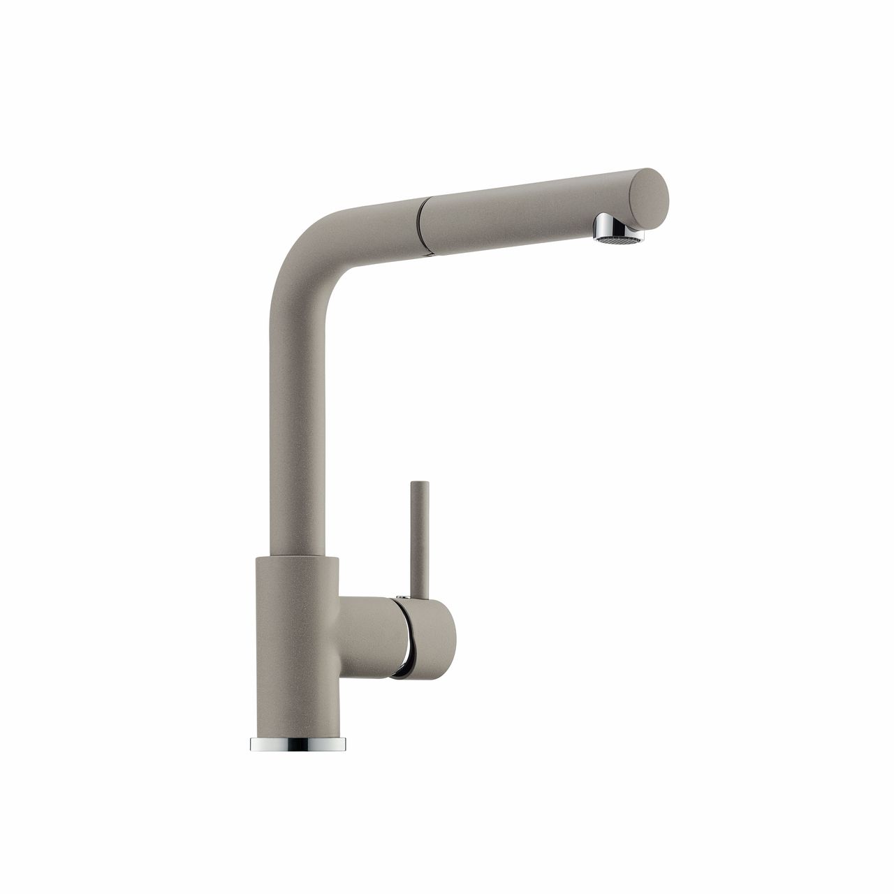 Die Linea Küchenarmatur Gramix 2 ist mit ihrer schlanken Form und modernen Optik ein Blickfang in sämtlichen Kücheneinrichtungen. Sie setzt auf einen ansprechenden Granit-Look, womit sie jeden Spülbereich gezielt aufwertet. Nach dem persönlichen Geschmack lässt sich die Hochdruckarmatur in mehreren stilvollen Farben auswählen. Der herausziehbare Auslauf erleichtert den Abwasch und reinigt auch größere und sperrige Töpfe, die nicht in die Spüle passen. Durch den Schwenkbereich von 180° bietet die Spültischarmatur reichlich Bewegungsspielraum und erreicht selbst schwer zugängliche Stellen im Becken mühelos. Dank des seitlichen Hebels bleibt der Auslauf der Armatur auch beim Schließen mit nassen Händen trocken und sauber. Mit seiner hochwertigen und langlebigen Qualität erfüllt der Einhebelmischer höchste Ansprüche und wird den täglichen Anforderungen in der Küche gerecht.