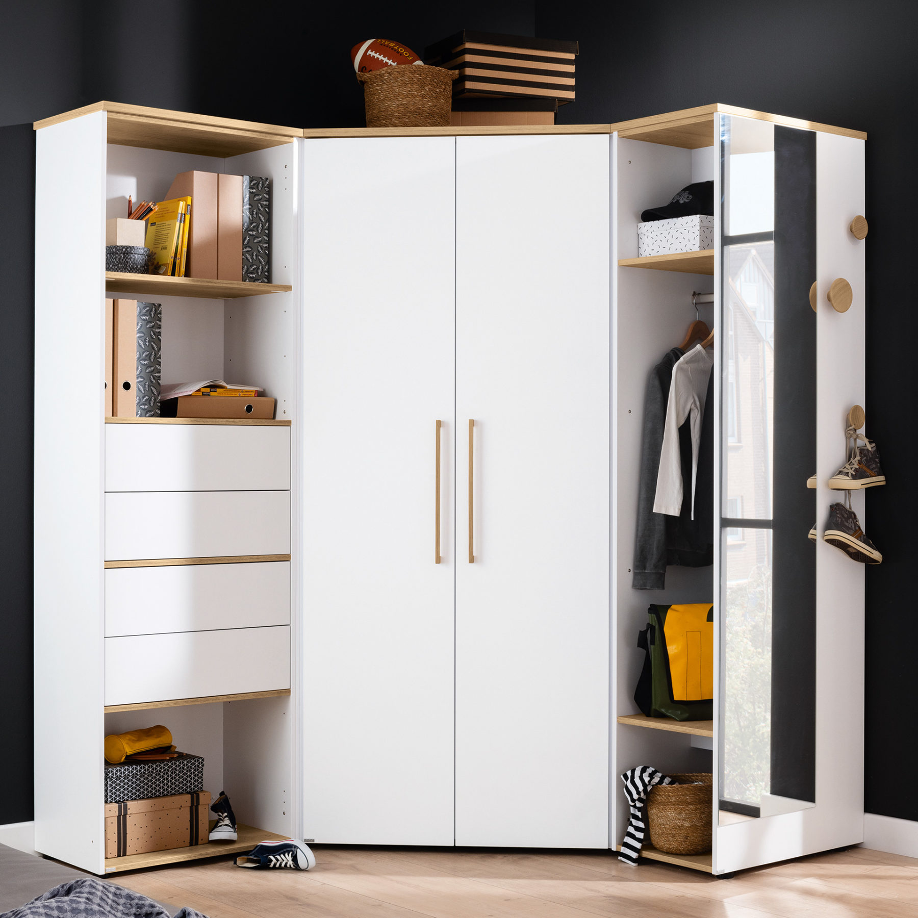 - Kann an die schmale oder breite Seite vom Eck-Kleiderschrank Oscar 2T angestellt werden