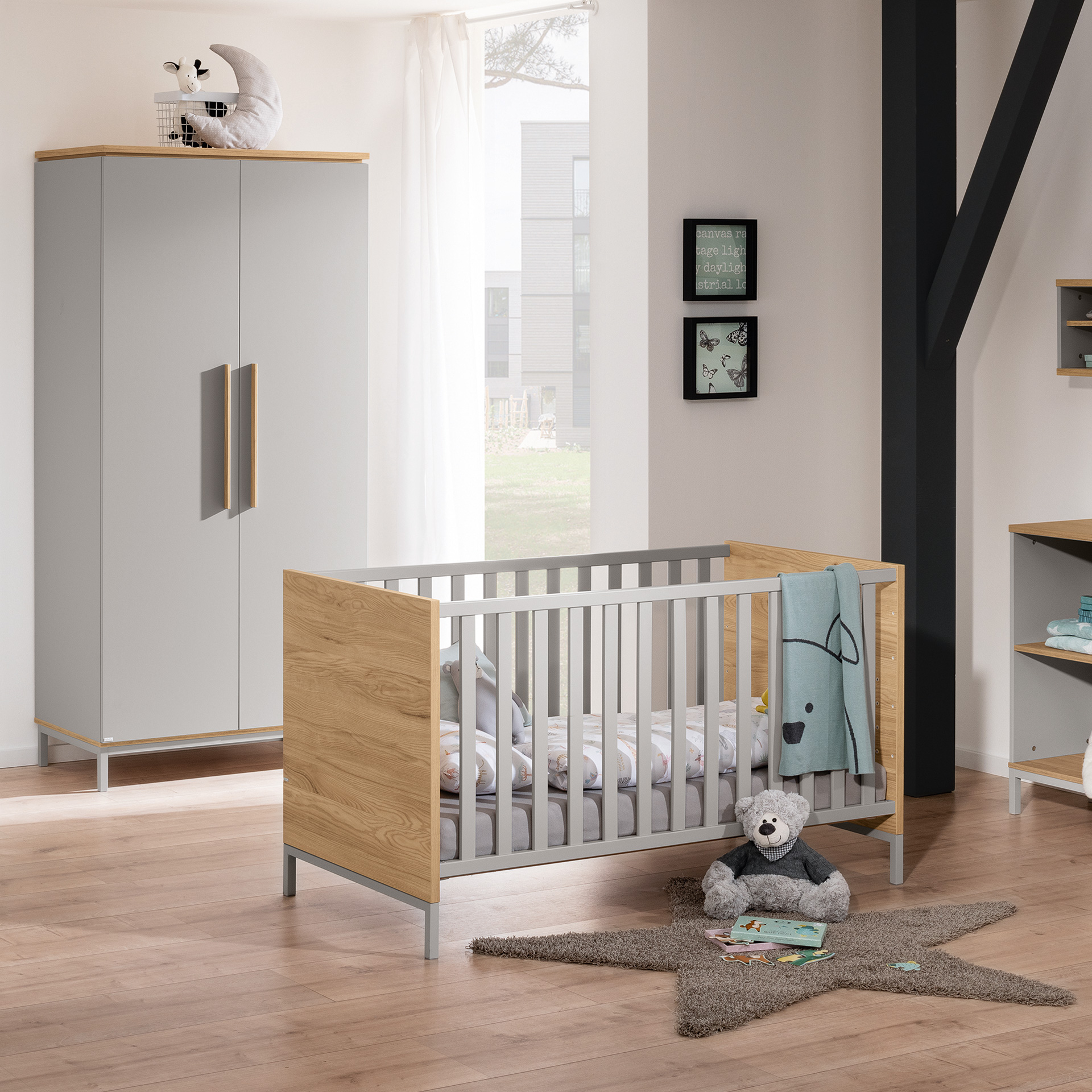Gemütlichkeit neu gedacht – asymmetrische Hingucker. Babyzimmer in Kieselgrau mit Eiche-Montana Deine Begeisterung für die natürliche Optik und die gemütliche Ausstrahlung von Holzdekor verbindet sich nahtlos mit deiner Liebe zu klaren Linien und dezenten Farben? Benne vereint Kieselgrau mit Eiche-Montana in einer einzigartigen Möbelserie, mit der du stilsicher einen zeitgemäßen Wohlfühlort für dein Kind schaffst, der mühelos mitwächst. Erlebe mit Benne die ideale Symbiose aus Funktionalität, Ästhetik und Liebe im Babyzimmer