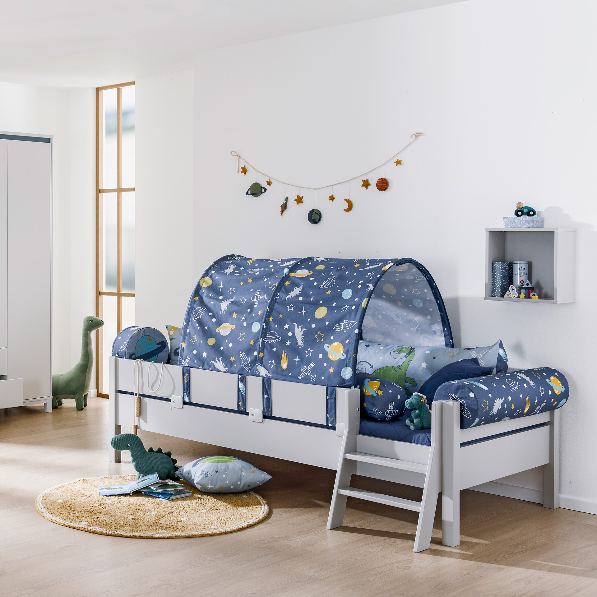 Auswahl hochwertiger Betten - Kinderbetten designed to grow - Tiago macht es dir leicht, mit dem Wachstum deines Kindes Schritt zu halten. Baue einfach das vorhandene Bett flexibel um, beispielsweise vom abenteuerlichen Spielbett zum gemütlichen Jugendbett. Viele Varianten für jedes Alter - Wähle Tiago in der Farbe, die dir am besten gefällt: Kreideweiß oder Kieselgrau. Anschließend kannst du das Bett individuell gestalten – zum Beispiel mit Motiv-Textilien passend zum Lieblingsthema deines Kindes. Die Betten und Studioliege gibt es in drei Breiten. Spiel-, Hoch und Etagenbetten in zwei Breiten. Wächst mit deinem Kind mit - Überlege dir, welche Bedürfnisse dein Kind hat und wähle das Bett, das am besten passt. Wenn es älter wird, kannst du es immer umbauen. Du kannst zum Beispiel eine Liege mit Absturzsicherung und Rausfallschutz als erstes großes Bett für deinen Nachwuchs aussuchen. Später, wenn dein Kind sicher schläft, kannst du den zusätzlichen Schutz abnehmen. Viele weitere Umbauvarianten machen die Tiago-Betten zu echten Verwandlungskünstlern.