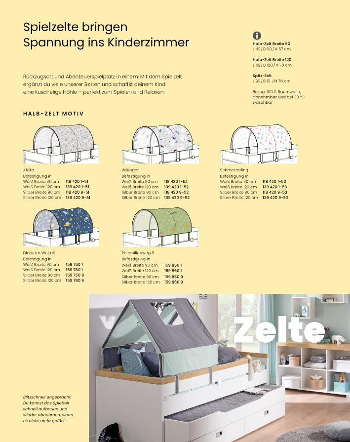 • Halb Zelt 120 = nur für Paidi Betten in der Breite von 120 cm