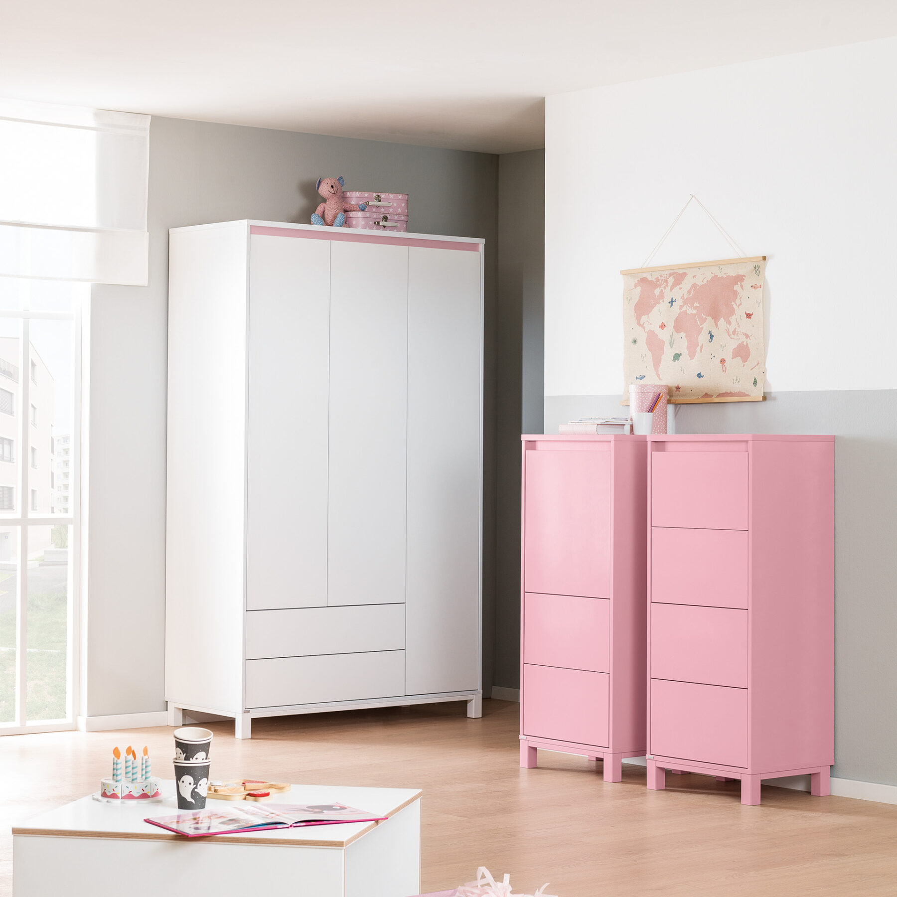 Puristische Formen und das individuelle Spiel mit Farbe. Das grifflose Design beim Programm Olli sorgt für einen edlen und cleanen Look. Die Farbvarianten der Friese und Solitärmöbel lassen farbige Akzente ins Babyzimmer einziehen. Die Schranktüren und Schubladen sind mit Push-to-open-Funktion ausgestattet. Der Vollauszug der oberen Schublade der Kommode ermöglicht Zugriff bis in die hinterste Ecke.