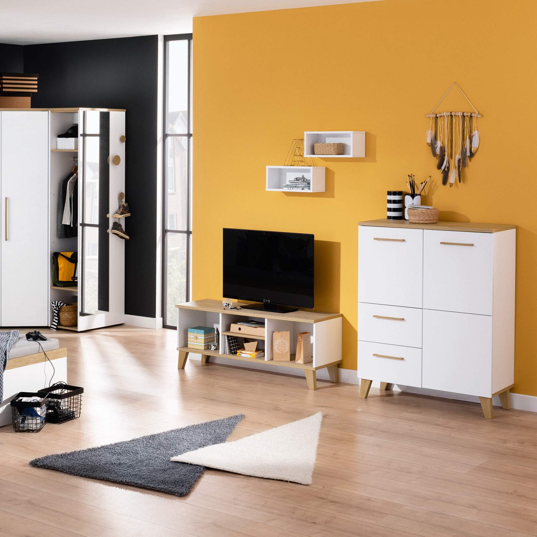 Das Highlight der PAIDI Oscar Serie stellt unumstritten der praktische Eckkleiderschrank dar. Der Hersteller ist den Anfordernissen seiner Kunden gefolgt und hat mit der platzsparenden Ecklösung eine Möglichkeit für viel Stauraum bei kleiner Fläche geschaffen. Oftmals bietet das Kinderzimmer nicht so viel Platz wie benötigt wird, aber mit dem Möbelsystem von Oscar können Sie das Kinderzimmer individuell und passend für Ihre Raumgröße planen. Mit dem flexiblen Eck-Kleiderschranksystem kreiert PAIDI ein neues Funktionsmöbel, das sämtliche Kleidungsstücke und auch Spielsachen ordentlich verstaut. Hier wird moderner Stil mit einer praktischen Alltagstauglichkeit verbunden. Der Eckkleiderschrank ist auf der einen Seite äußerst kompakt, aber andererseits auch sehr dezent. Das ist in kleinen Räumen wichtig, um den vorhandenen Raum nicht zu überladen, sondern optimal auszunutzen.