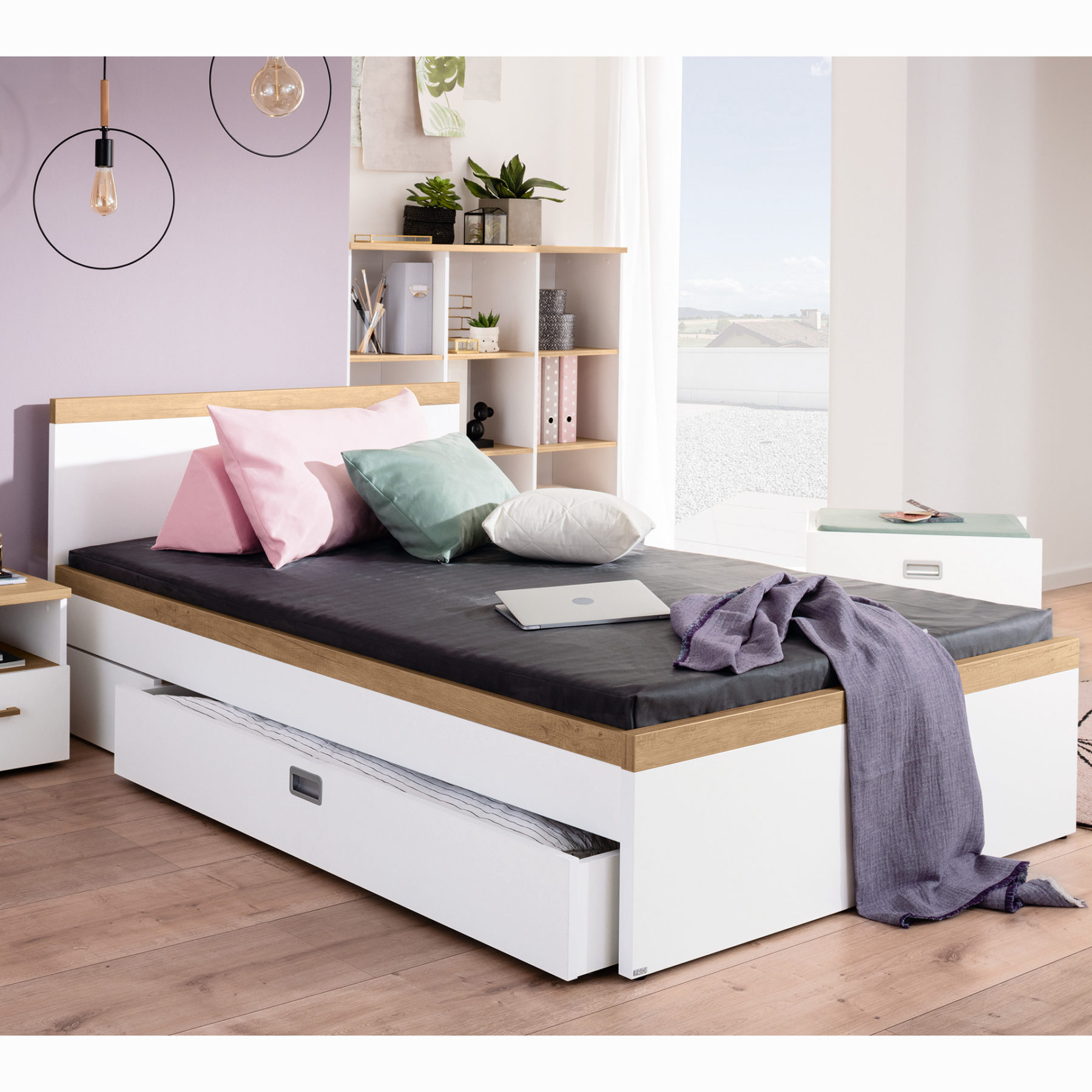 Modell: Oscar Ausführung: Ausziehbett FloydStabiler, lackierter Metallrahmen mit Front und Seitenblende in KreideweißMit Universalrollen ausgestattet, wird mit einem Gurt unter dem Bett hervorgezogenund mittels einem von Gasdruckfedern unterstützten Mechanismus nach oben verstelltRutschhemmende Endstellung für Paidi Liege und Etagenbetten Liegefläche 90 x 190 cm Lieferbar in verschiedenen Ausführungen:Front und Seitenblende in KreideweißStandard = mit 13 schichtverleimten Federleisten in KunststofflagernComfort   = mit 24 schichtverleimten Federleisten in Kunststofflagern, mittige HärtegradeinstellungAußenmasse: ca. Länge 198,0 / Höhe 92,2 / Höhe 42,5 cm Hinweis:Es können lt. Werks-Angaben nur Matratzen mit einer Höhe von 12 cm verwendet werden. Höhe mit Matratze dann ca. 41,5 cm Die Matratze sowie weiteres Zubehör gehören nicht zum Lieferumfang, sind aber selbstverständlich zusätzlich gegen Mehrpreis erhältlich. PAIDI OscarDas Highlight der PAIDI Oscar Serie stellt unumstritten der praktische Eckkleiderschrank dar. Der Hersteller ist den Anfordernissen seiner Kunden gefolgt und hat mit der platzsparenden Ecklösung eine Möglichkeit für viel Stauraum bei kleiner Fläche geschaffen. Oftmals bietet das Kinderzimmer nicht so viel Platz wie benötigt wird, aber mit dem Möbelsystem von Oscar können Sie das Kinderzimmer individuell und passend für Ihre Raumgröße planen. Mit dem flexiblen Eck-Kleiderschranksystem kreiert PAIDI ein neues Funktionsmöbel, das sämtliche Kleidungsstücke und auch Spielsachen ordentlich verstaut. Hier wird moderner Stil mit einer praktischen Alltagstauglichkeit verbunden. Der Eckkleiderschrank ist auf der einen Seite äußerst kompakt, aber andererseits auch sehr dezent. Das ist in kleinen Räumen wichtig, um den vorhandenen Raum nicht zu überladen, sondern optimal auszunutzen.