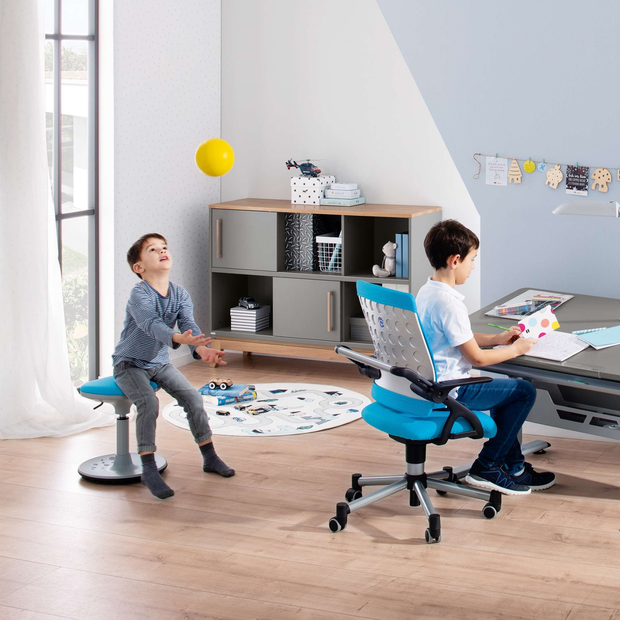 • Für ein aktives, dreidimensionales Sitzerlebnis : Das Sitness Gelenk unterstützt das Kind, die Sitzfläche des Stuhls in alle Richtungen zu neigen - ganz einfach durch Gewichtsverlagerung. Diese 360 ° Bewegung animiert dazu, beim Sitzen stets in Bewegung zu bleiben. Das trainiert nicht nur die Rückenmuskulatur und fördert eine gesunde Körperhaltung, sondern kann auch die Konzentrationsfähigkeit steigern.