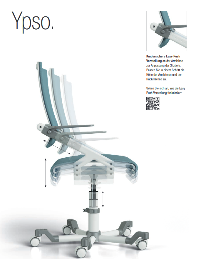 - Sitztiefe und Rückenlehne in neun arretierbare Positionierung der Armlehnen einstellbar - für eine optimale Anpassung an die Körpergröße.