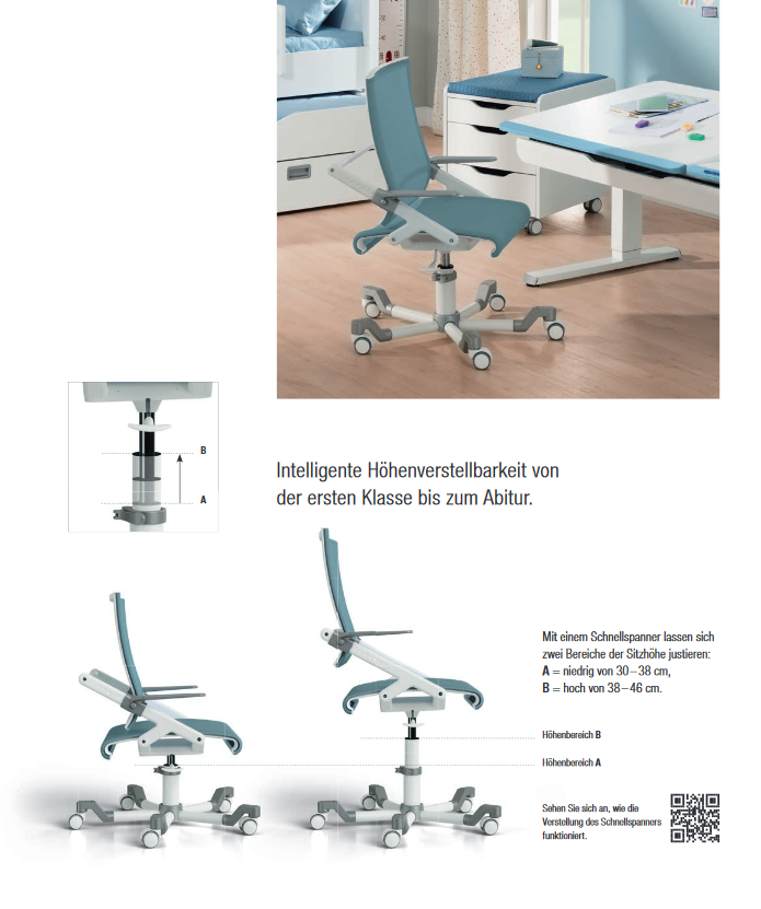 Lernen leicht gemacht. Mit ergonomischen Kinderschreibtischen von PAIDI. Schüler wachsen nicht nur mit ihren Aufgaben. Von der ersten Klasse bis zum Abschluss ist ein weiter Weg – und Kinderschreibtische von PAIDI wachsen immer mit. Eine stets ergonomische Sitzposition wird dadurch erreicht, dass unsere Kinderschreibtische höhenverstellbar sind. Auch dank der neigbaren Arbeitsplatte werden Rückenbeschwerden und Haltungsschäden vermieden. Passen dazu: ergonomische Kinderschreibtischstühle Weil ein Tisch ohne Stuhl wenig Sinn ergibt, gibt es bei PAIDI natürlich auch eine große Auswahl an Kinderschreibtischstühlen. Alle Schreibtischstühle sind ergonomisch und mitwachsend, weil sich Sitzhöhe, Sitztiefe und Rückenlehne ganz leicht anpassen lassen. Bei unserem Tio Sitness® sorgt die Sitness®-Technologie dafür, dass die Schüler sogar beim Sitzen in Bewegung bleiben.
