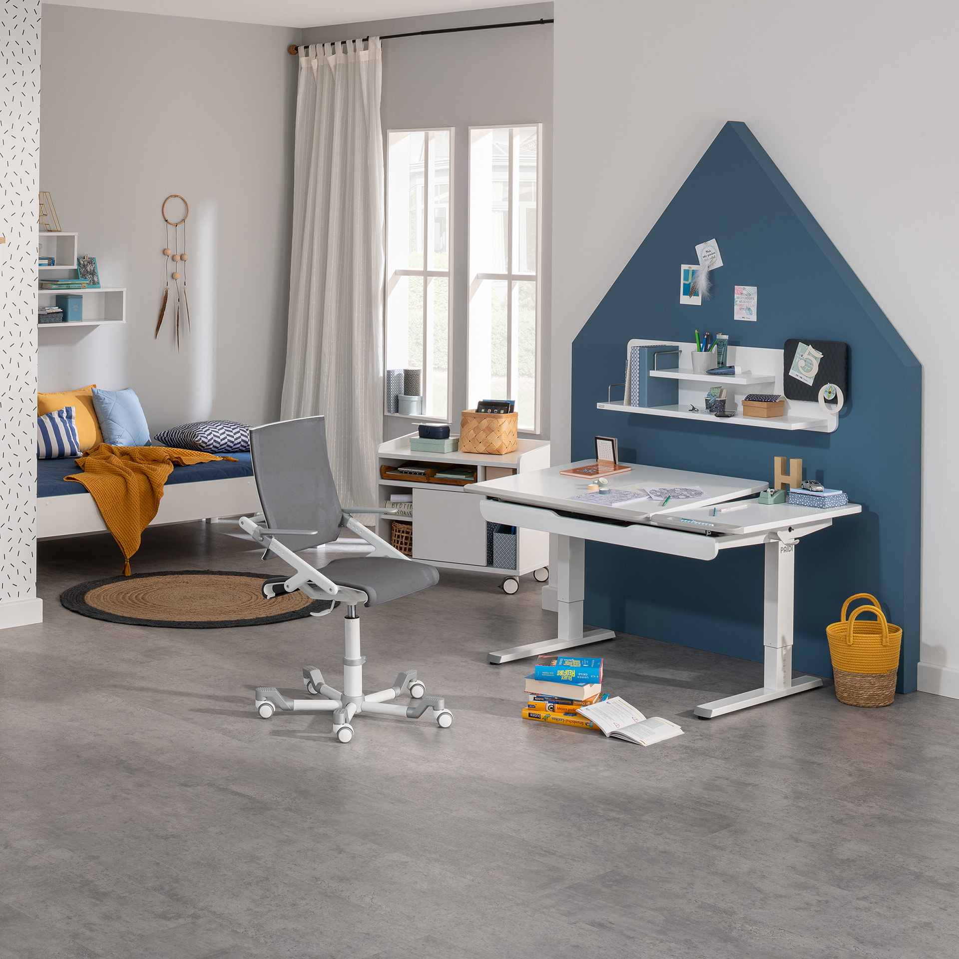 Lernen leicht gemacht. Mit ergonomischen Kinderschreibtischen von PAIDI. Schüler wachsen nicht nur mit ihren Aufgaben. Von der ersten Klasse bis zum Abschluss ist ein weiter Weg – und Kinderschreibtische von PAIDI wachsen immer mit. Eine stets ergonomische Sitzposition wird dadurch erreicht, dass unsere Kinderschreibtische höhenverstellbar sind. Auch dank der neigbaren Arbeitsplatte werden Rückenbeschwerden und Haltungsschäden vermieden. Passen dazu: ergonomische Kinderschreibtischstühle Weil ein Tisch ohne Stuhl wenig Sinn ergibt, gibt es bei PAIDI natürlich auch eine große Auswahl an Kinderschreibtischstühlen. Alle Schreibtischstühle sind ergonomisch und mitwachsend, weil sich Sitzhöhe, Sitztiefe und Rückenlehne ganz leicht anpassen lassen. Bei unserem Tio Sitness® sorgt die Sitness®-Technologie dafür, dass die Schüler sogar beim Sitzen in Bewegung bleiben.