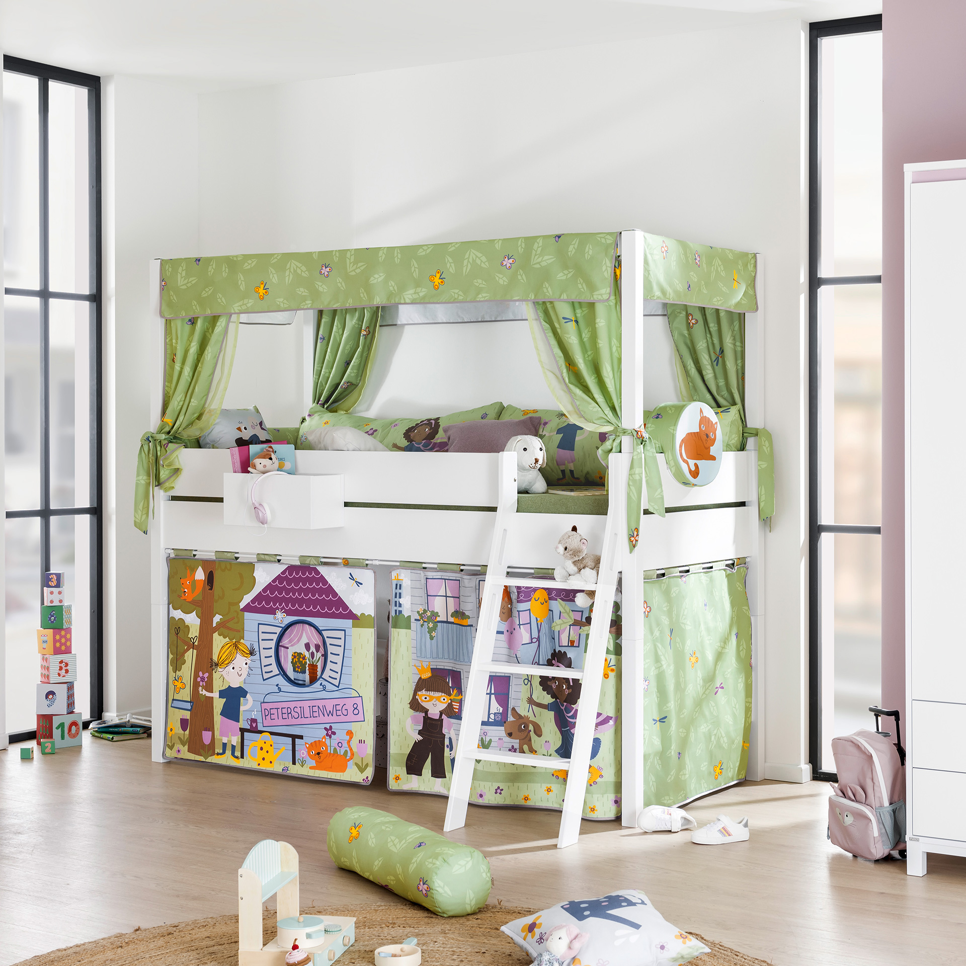 Ob Sicherheitsset, Umbauseiten, Kopfschutz – Paidi bietet vieles an Zubehör, zur Sicherheit und zum Wohle Ihrer Kinder. Gestalten Sie Ihr Kinderzimmer mit den passenden Paidi-Textilien in den verschiedensten Variationen: Ob Pirat, Wikinger oder Flower Power - der Fantasie sind keine Grenzen gesetzt. Neben den üblichen Vorhängen bietet Paidi verschiedene Zelte, Baldachin-Aufbauten und dazu passende Textilien an, die aus einem normalen Bett einen Kindertraum wahr werden lassen. Wenn das Paidi Bett an jüngere Geschwister weitergegeben wird, kann man im Handumdrehen mit den passenden Textilien ein neues Bett zaubern.
