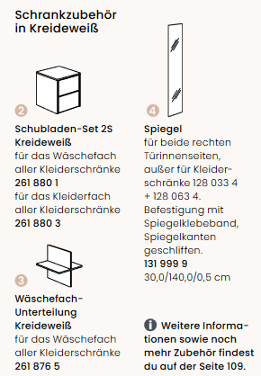 | Schrankausführung: | Drehtürenschrank ohne Spiegel |
