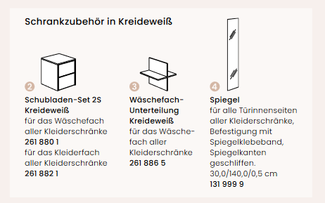 | Schrankausführung: | Drehtürenschrank ohne Spiegel |