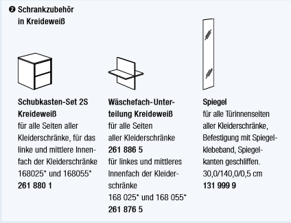 | Schrankausführung: | Drehtürenschrank ohne Spiegel |