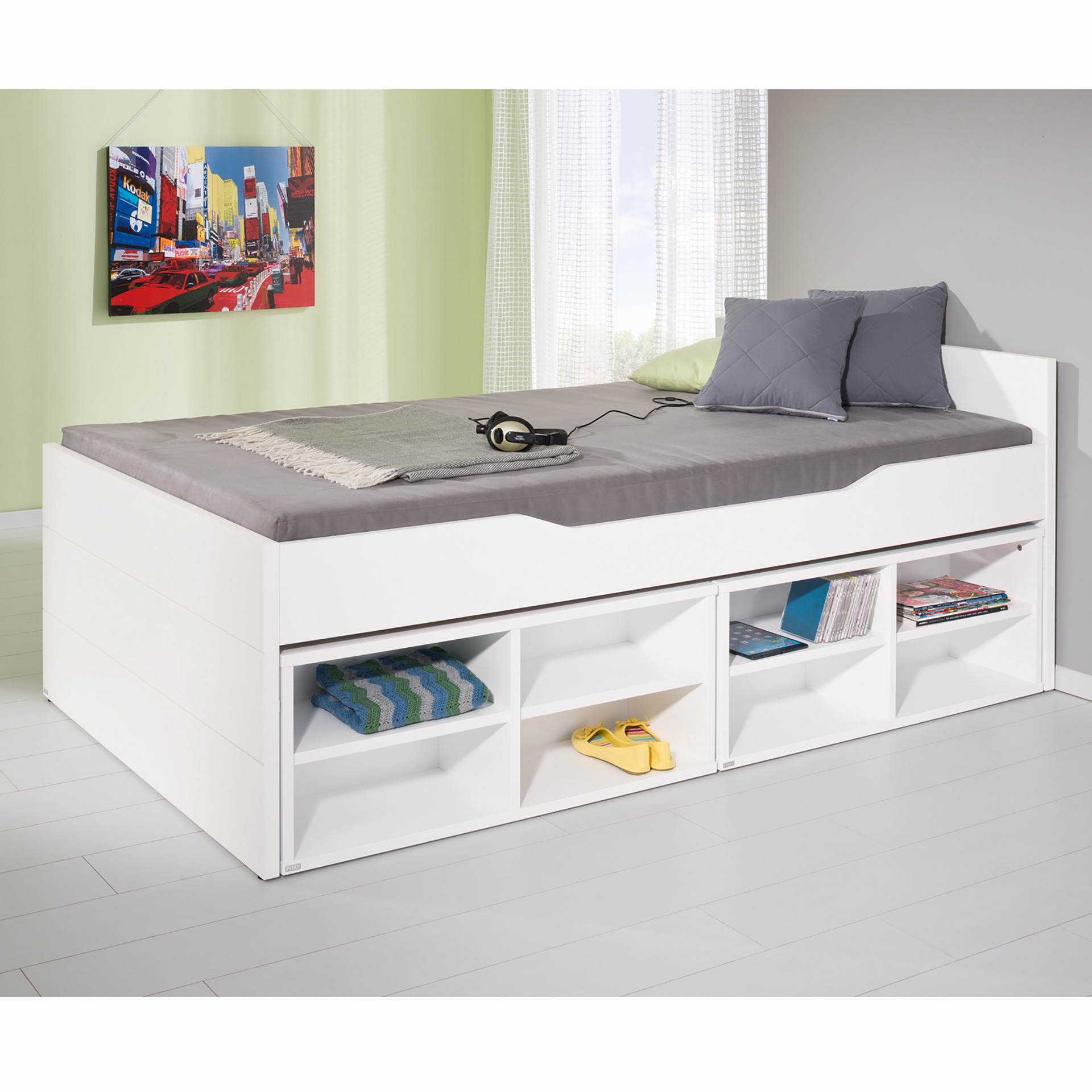 Modell:Tiny House Fionn Fiona Kira Ylvie Beschreibung:UnterschieberegalType 2328061mit 4 Fächern ( nur für Kojenbett ) 2 Stück passen auf jeder Seite unter das KojenbettAußenmasse L 99,0 / B 30,0 / H 40,4 cm Hinweis :Weiteres Zubehör gehört nicht zum Lieferumfang, ist aber selbstverständlich separat erhältlich.                                                                                              PAIDI Tiny HouseDie universellen Betten zum Kuscheln. Wandelbare Kinderbetten. Ein Eigenheim schon für Kinder: Das Paidi Tiny House ist vielfältig kombinierbar. Ein gemütlicher Rückzugsort und sicherer Schlafplatz für Mädchen und Jungs. Gut geschütztes Haus - Nicht nur das Dach lässt sich mit kreideweißen, rosafarbenen, hellblauen oder kieselgrauen Dachschindeln decken, sondern auch die Vorderseite des Tiny House mit Fenster- und Wandpaneel schließen.