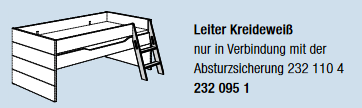 - Die Leiter ist nur in Verbindung mit der Absturzsicherung ( Type 2321104 Modell Fionn ) und ( Type 2321101 Modell Fiona und Ylvie ) verwendbar, bitte beachten !