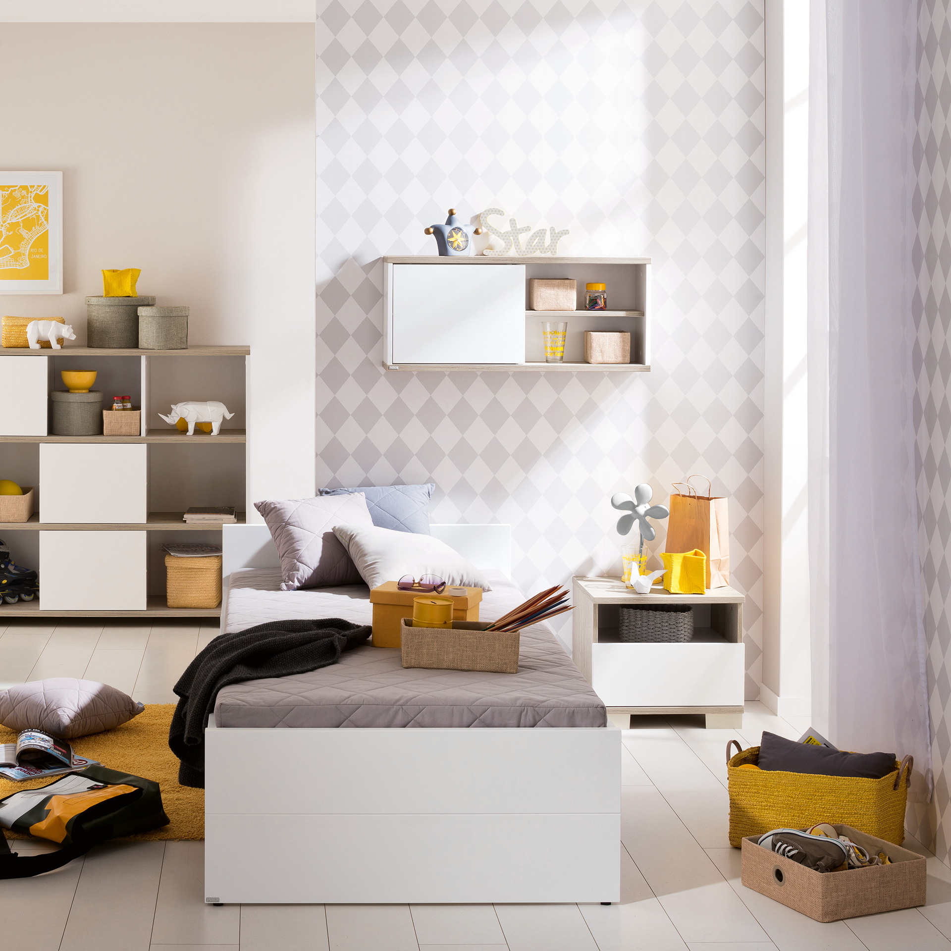 Wohlfühlen auf immer neue Weise – Schiebetüren für variable Designs. Stilvoller Stauraum für dich und dein Baby Babyzimmer brauchen ausreichend Stauraum für Spielzeug, Kleidung, Wickelutensilien und mehr. Mit der Möbelserie Carlo kannst du alles bequem verstauen – in breiten Schubladen, Regalen sowie Schränken mit variablen, leichtgängigen und kindersicheren Schiebetüren. Die Möbelfronten in Kreideweiß und Fichte-Vintage-Dekor setzen stilvolle Akzente. Individuelle Gestaltung – entscheide selbst. Die Kommode bietet mit Schubläden in Kreideweiß oder Holzdekor die Möglichkeit deiner persönlichen Gestaltung. Mache Wickelkommode und Kleiderschrank zu einem echten Blickfang, indem du den Holzanteil der Schubladen des Kleiderschranks und der Wickelkommode selbst bestimmst. Entscheide auch über die Position der Schiebetüren deines Regales selbst. Du kannst sie immer wieder neu anordnen und so den Look des Regales verändern.