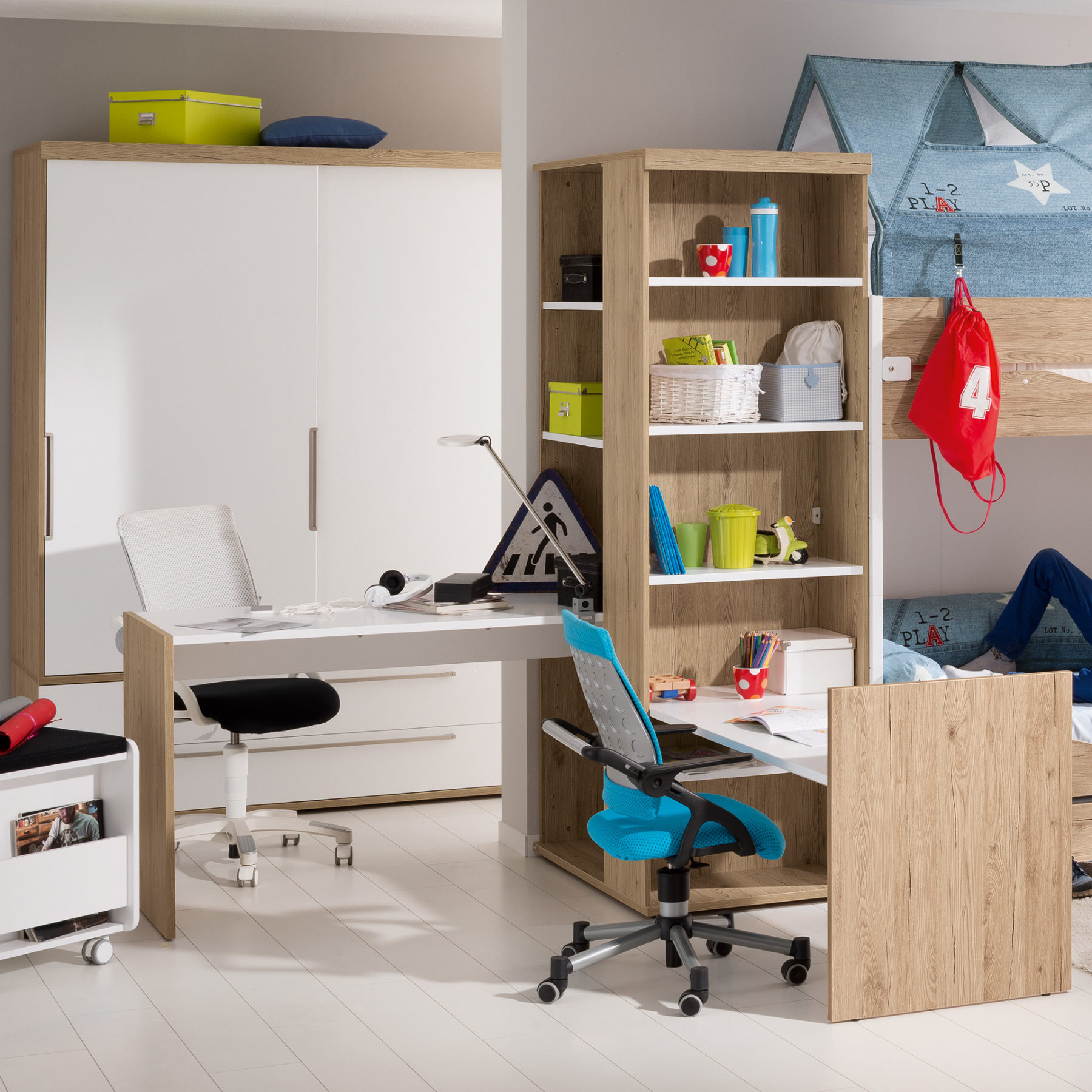 Modell: Sten Olli Fionn Fiona Carlo Lieven Stiene Beschreibung: Wäschefachunterteilung Type 2618765 Für Schiebetürenschrank Ausführung: Kreideweiß PAIDI Sten Trend im Kinderzimmer: hochwertige Möbel in nordisch inspiriertem Schiefergrau. Reizvolle Kontraste So sehen zeitgemäße Kinderzimmer aus: nordisches Design mit Liebe zum Detail und schönen Kontrasten in Schiefergrau und Eiche. Aus nachhaltiger Forstwirtschaft klimaneutral hergestellt. Spielbett, Hochbett, Etagenbett Ein Paradies für Mädchen und Jungs: Unterm Spielbett mit seiner Höhe von 120 oder 160 cm entsteht hinterm Vorhang-Set eine Abenteuerwelt. Unter das Hochbett mit 180 cm Höhe passt sogar ein Schreibtisch. Das Etagenbett bietet gleich zwei Schlafmöglichkeiten, mit Unterschiebebett sogar drei. Jugendbett in drei Breiten Richtig stylish wie für Erwachsene sieht die Traumliege in den Maßen 90, 120 und 140 x 200 cm mit ihren abgeschrägten Bettpfosten aus. Sie ist erhältlich in Schiefergrau kombiniert mit Eiche massiv oder komplett in Eiche massiv, mit oder ohne gepolstertem Betthaupt. So entstehen verschiedene Looks. Komfortable Schiebetürenschränke Die Schränke mit Schiebetüren sind in zwei Breiten erhältlich und bieten extra viel Platz. Das original PAIDI Slide System sorgt für höchste Sicherheit und schützt die Finger vorm Einklemmen. Die Türen schließen sanft und leise. Nordischer Wohlfühl-Look im Kinder- und Jugendzimmer.