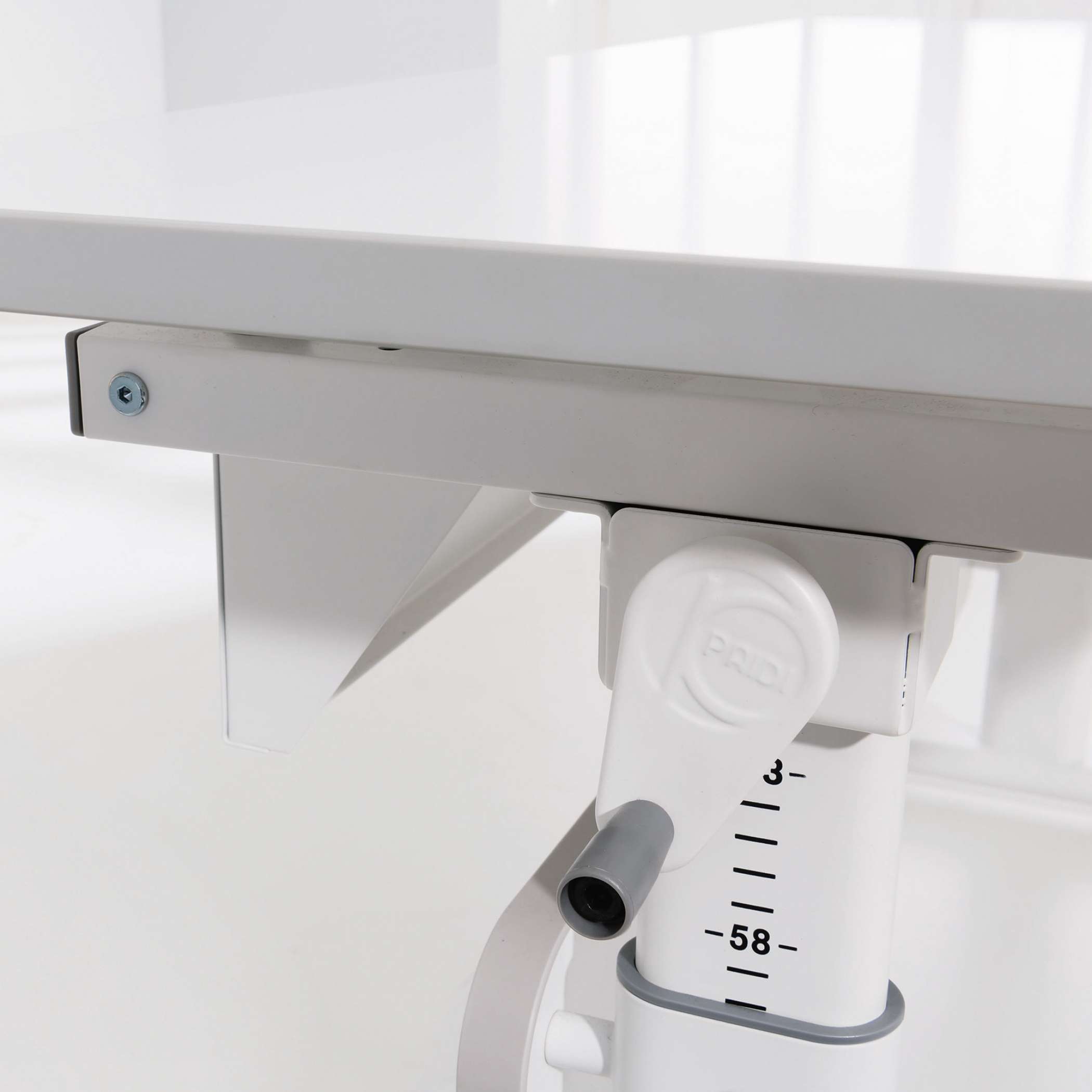 - Schrägstellung der Tischplatte bis 19 ° durch drei hochwertige Raster-Scheren