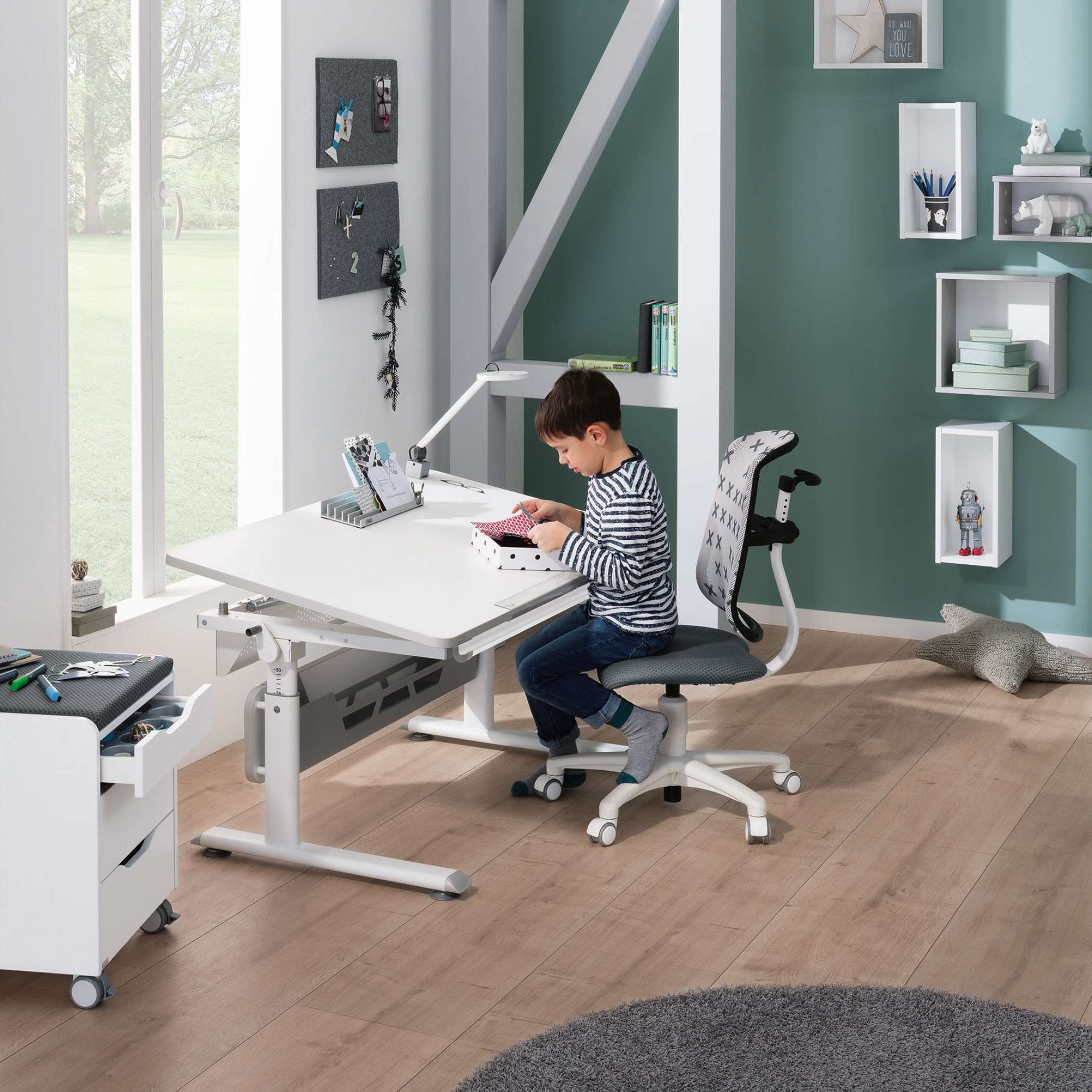 Lernen leicht gemacht. Mit ergonomischen Kinderschreibtischen von PAIDI. Schüler wachsen nicht nur mit ihren Aufgaben. Von der ersten Klasse bis zum Abschluss ist ein weiter Weg – und Kinderschreibtische von PAIDI wachsen immer mit. Eine stets ergonomische Sitzposition wird dadurch erreicht, dass unsere Kinderschreibtische höhenverstellbar sind. Auch dank der neigbaren Arbeitsplatte werden Rückenbeschwerden und Haltungsschäden vermieden. Passen dazu: ergonomische Kinderschreibtischstühle Weil ein Tisch ohne Stuhl wenig Sinn ergibt, gibt es bei PAIDI natürlich auch eine große Auswahl an Kinderschreibtischstühlen. Alle Schreibtischstühle sind ergonomisch und mitwachsend, weil sich Sitzhöhe, Sitztiefe und Rückenlehne ganz leicht anpassen lassen. Bei unserem Tio Sitness® sorgt die Sitness®-Technologie dafür, dass die Schüler sogar beim Sitzen in Bewegung bleiben.