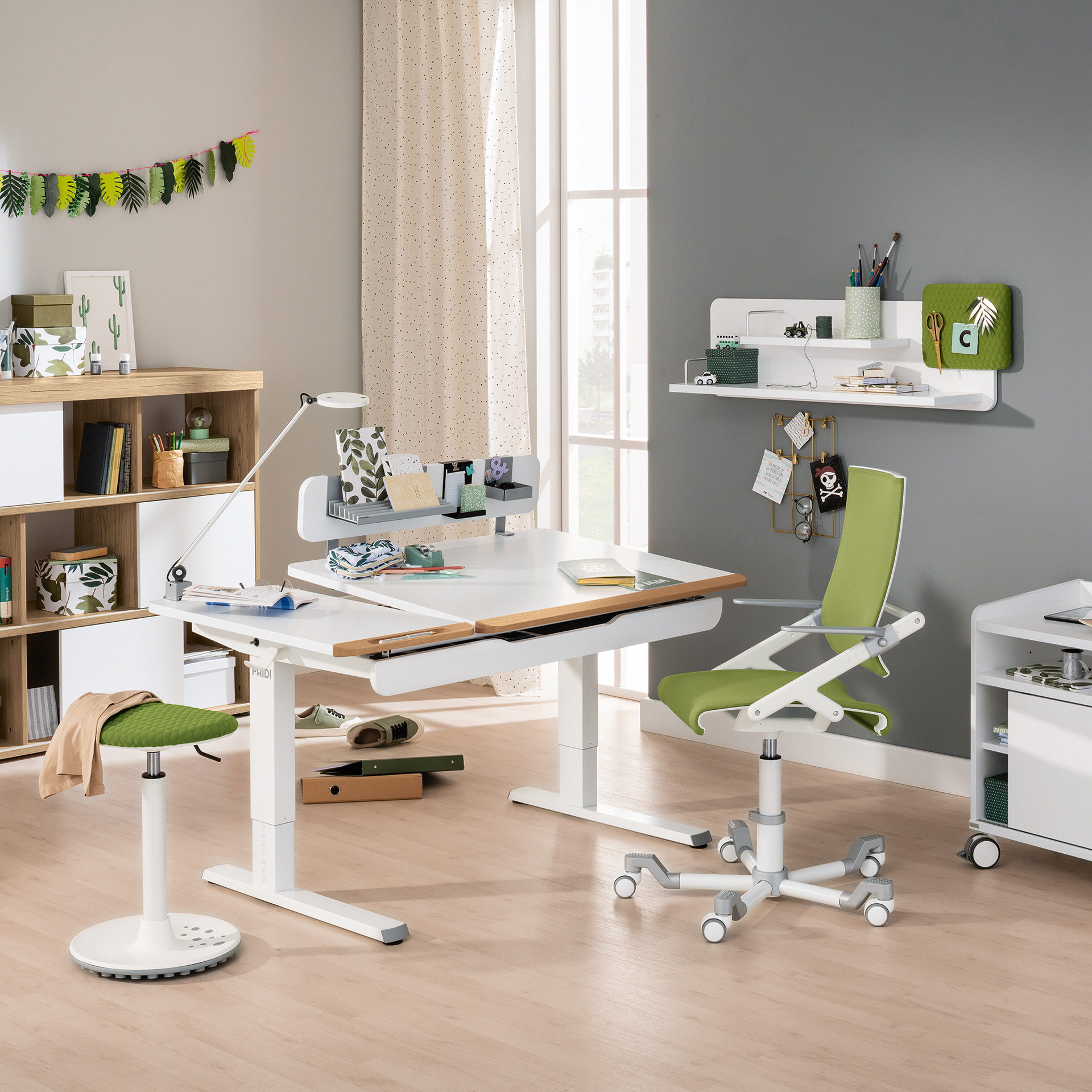 Lernen leicht gemacht. Mit ergonomischen Kinderschreibtischen von PAIDI. Schüler wachsen nicht nur mit ihren Aufgaben. Von der ersten Klasse bis zum Abschluss ist ein weiter Weg – und Kinderschreibtische von PAIDI wachsen immer mit. Eine stets ergonomische Sitzposition wird dadurch erreicht, dass unsere Kinderschreibtische höhenverstellbar sind. Auch dank der neigbaren Arbeitsplatte werden Rückenbeschwerden und Haltungsschäden vermieden. Passen dazu: ergonomische Kinderschreibtischstühle Weil ein Tisch ohne Stuhl wenig Sinn ergibt, gibt es bei PAIDI natürlich auch eine große Auswahl an Kinderschreibtischstühlen. Alle Schreibtischstühle sind ergonomisch und mitwachsend, weil sich Sitzhöhe, Sitztiefe und Rückenlehne ganz leicht anpassen lassen. Bei unserem Tio Sitness® sorgt die Sitness®-Technologie dafür, dass die Schüler sogar beim Sitzen in Bewegung bleiben.