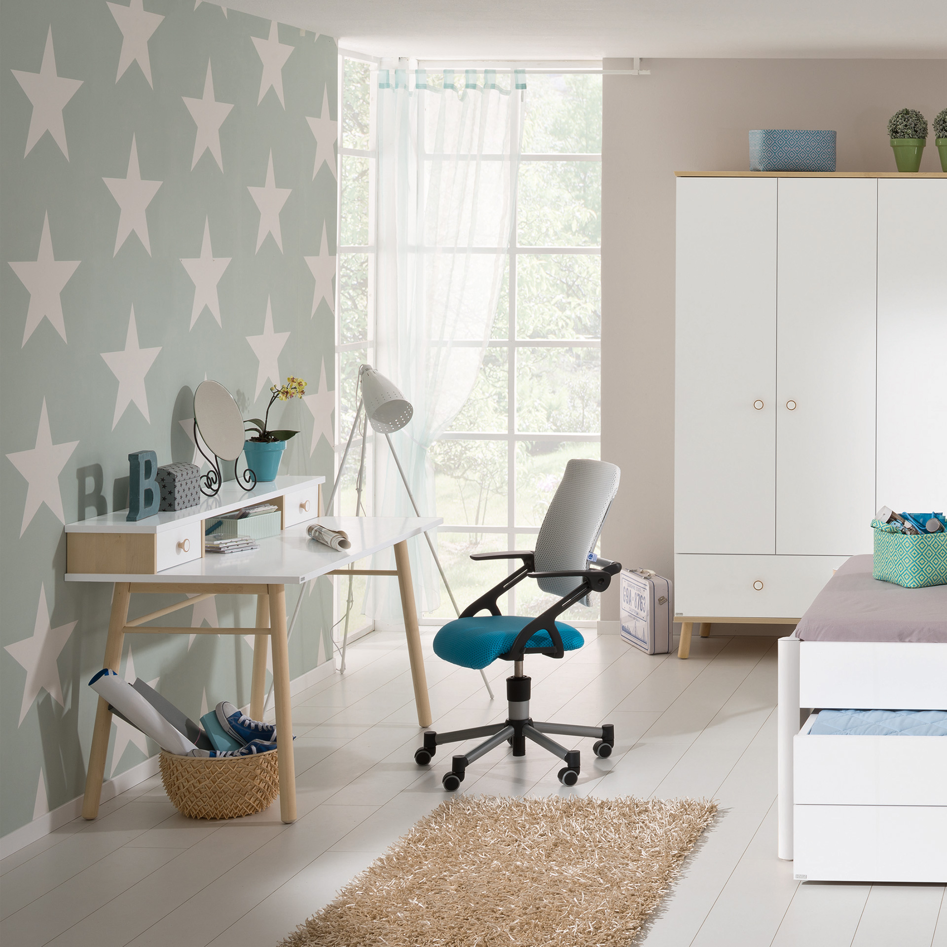 Harmonie im Kinderzimmer mit skandinavischem Birke-Naturlook. Hell mit Birke - Stimmungsaufheller Tag für Tag: Das natürliche und harmonische Ambiente im Kinderzimmer ist durch Flächen in Kreideweiß und Elemente in Birke-Optik geprägt. Klimaneutral hergestellt mit Holz aus nachhaltiger Forstwirtschaft und mit Lacken veredelt, die nach strenger Norm geprüft wurden. Spielbetten, Hochbetten, Etagenbetten - Je nach Höhe des Spielbetts (90, 120 und 160 cm) lässt sich der Raum darunter zum Spielen und Verstauen und beim Etagenbett (160 cm) auch zum Schlafen nutzen. Unters Hochbett (180 cm) passt sogar platzsparend ein Schreibtisch. Kojenbett mit Stauraum - Unters Kojenbett in den Maßen 90 x 200 cm oder 120 x 200 cm passt ein Unterschiebebett für Besuch über Nacht. Oder auch Rollregale und Rollboxen, die mit Sitzkissen als mobiler Platz dienen können. Das Unterschieberegal hat vier Fächer und kann von beiden Seiten unters Bett geschoben werden.