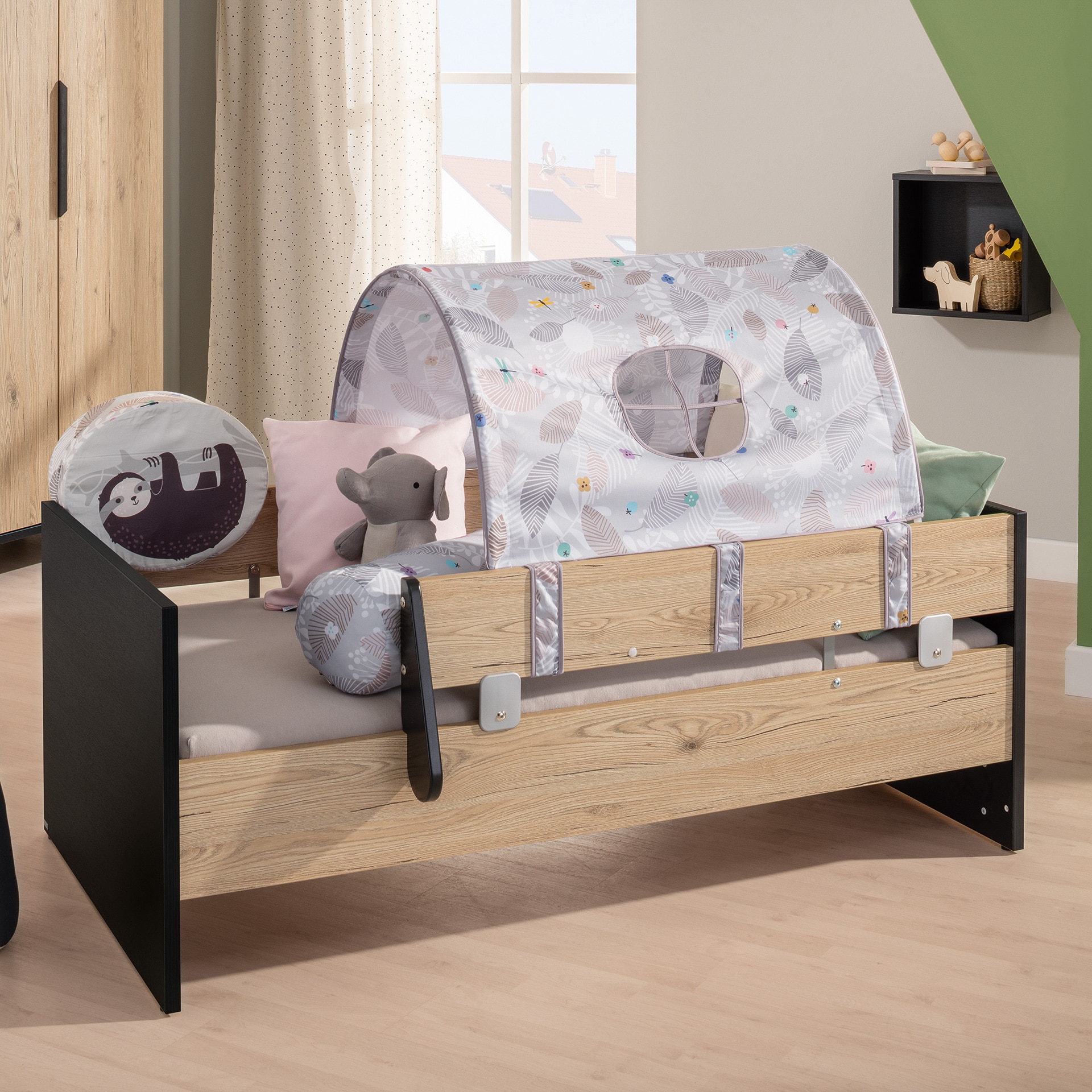 Industrial Style. Starke Kontraste fürs Kinderzimmer Tomke zeichnet sich durch das Zusammenspiel zweier Farbtöne aus: Schwarze Korpusse rahmen die Fronten aus warmem Holzdekor ein und verleihen den Möbeln einen urbanen Look. Die holzfarbenen Einlegeböden scheinen in den schwarzen Regalen zu schweben und setzen Schönes sowie Nützliches in Szene. So gestaltest du ein zeitloses Babyzimmer, das später auch als Grundlage für ein Kinder- oder Jugendzimmer funktioniert. Babybett Tomke – innovativ und komfortabel. Unsere Babybetten sind mit dem patentierten PAIDI-Schlupfsprossenmechanismus ausgestattet. Damit lassen sich die Gitterstäbe leicht herausnehmen und genauso komfortabel wieder einsetzen.