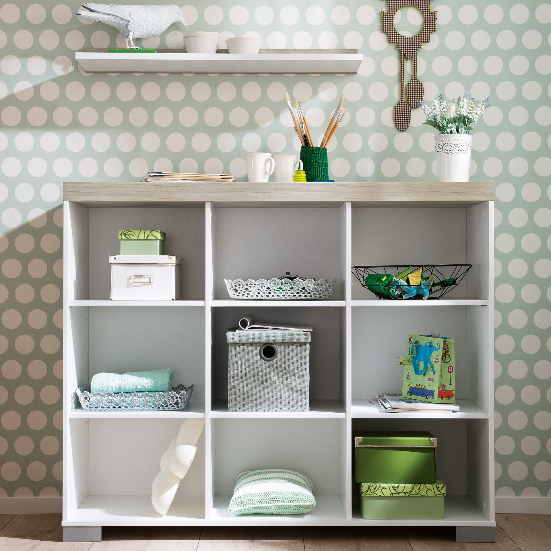 Modell:Kira Korpus und Front KreideweißDeckplatte und Fries ( je nach Type ) Eiche Nautik Nachbildung oder Eiche Nebraska NachbildungBeschreibung:Standregal8 offene Fächer Lieferbar in verschiedenen Ausführungen Außenmasse:ca. B 90,9 / H 147,0  / T 37,9 cm Hinweis: Weiteres Zubehör gehört jedoch nicht zum Lieferumfang, ist aber selbstverständlich gegen Mehrpreis erhältlich. Bei allen Paidi Betten ab einer Höhe von 90 cm ist eine Wandbefestigung unbedingt erforderlich. Bei Paidi Kommoden, Regalen und Kleiderschränken ab 90 cm Höhe ist ebenfalls eine Wandbefestigung erforderlich. Wir bitten um Beachtung!     PAIDI-KiraDie Möbelserie Kira des Kindermöbel-Produzenten Paidi beinhaltet Möbel für Babyzimmer, Kinderzimmer und Jugendzimmer. Die Deckplatten bei den Beimöbeln und Kleiderschränken sind abgesetzt und scheinen zu schweben. Das sorgt für eine leichte Optik. Außerdem hebt sich die Deckplatte auch farblich ab. Den Farbakzent können Sie in natürlich wirkender Nebraska-Eiche oder im Vintage-Style der Eiche-Nautik wählen. Der Korpus der einzelnen Möbelstücke ist in schönem Kreideweiß gehalten. Die metallenen Standfüße harmonieren mit den länglich gestalteten Griffen. Insgesamt ist das Design sehr linear und orientiert sich an Möbeln für Erwachsene. Die zurückhaltende Farbgebung lässt viel Raum für eigene Gestaltungs-Ideen.