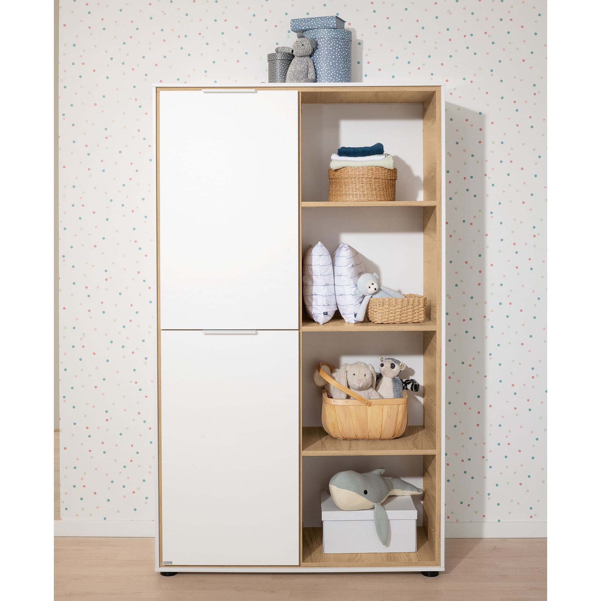 Modell:Lieven Korpus & Front KreideweißRahmen innen und Regalböden ( je nach Type ) Eiche Montana NachbildungGriffe ( je nach Type ) Weiß BeschreibungStandregal mit 2 Türen Lieferbar in verschiedenen Ausführungen Außenmasse B 97,2 / H 165,0 / T 38,8 cm Hinweis :Weiteres Zubehör gehört jedoch nicht zum Lieferumfang, ist aber selbstverständlich gegen Mehrpreis erhältlich. Bei allen Paidi Betten ab einer Höhe von 90 cm ist eine Wandbefestigung unbedingt erforderlich. Bei Paidi Kommoden, Regalen und Kleiderschränken ab 90 cm Höhe ist ebenfalls eine Wandbefestigung erforderlich. Wir bitten um Beachtung!  PAIDI LievenStauraum kann so gut aussehen. Lieven – Rahme schönes und Nützliches ein Liebhaber:innen italienischen Designs werden sich Hals über Kopf in Lieven verlieben. Denn die geradlinige Optik der Möbel wird durch einen doppelten Rahmen ergänzt – und damit zum echten Hingucker. Hochwertige Details wie der massive Babybettfries runden das Designkonzept ab. Für die schönsten Träume deines Babys – Babybett Lieven Das moderne Babybett mit seinen feinen Riegeln aus massiver Buche schafft eine behagliche Atmosphäre für süße Träume. Die eleganten Gitterseiten gewährleisten eine optimale Belüftung und sorgen für ein helles, luftiges Ambiente im Kinderzimmer. Mit der Mobilität des Nachwuchses im Blick können drei Schlupfsprossen bequem entfernt werden, um einen reibungslosen Übergang ins nächstgrößere Bett zu ermöglichen. Später verwandelt sich das Bett mithilfe des Sicherheits-Sets in die Juniorstufe und wird zum gemütlichen Kindersofa – ein langlebiger Begleiter im Wachstum deines Kindes.