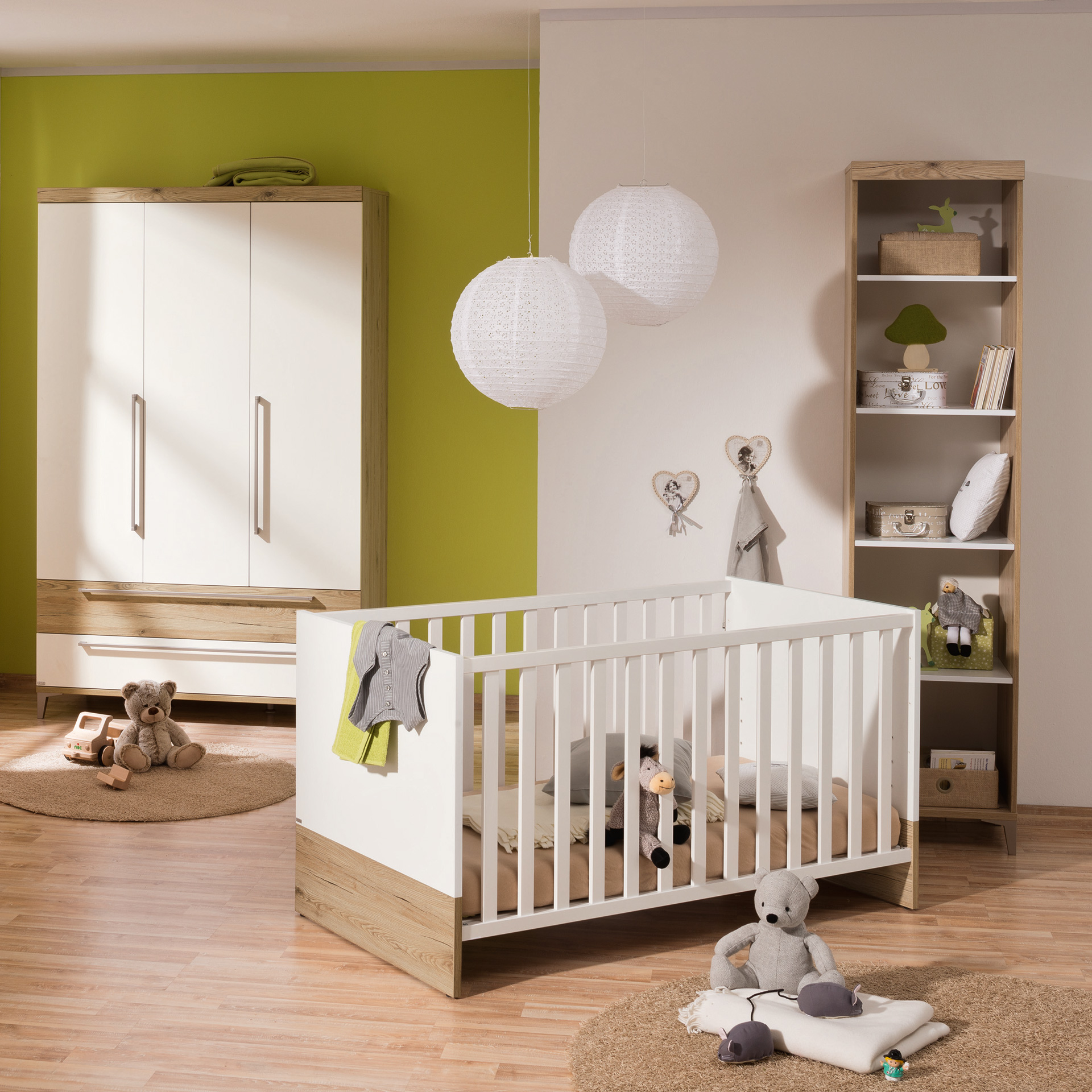 Durchdacht bis ins Detail. Kontraste in Holzoptik - Die gepaarte Eleganz von natürlichem Holzlook und strahlendem Weiß verleiht Remo eine zeitlose Modernität. Der stilvolle Kontrast trifft auf pure Funktion. Die Schiebetüren bremsen sanft für Kinderhände und schließen leise von selbst. Push-to-open Funktion und Vollauszug ermöglichen einen schnellen und einfachen Zugang zu den wichtigsten Utensilien. Ein Bett, viele Umbaumöglichkeiten - Wird dein Kind zu groß fürs Babybett, kann dieses mit dem Sicherheits-Set in die Juniorstufe verwandelt werden. Lasse dich von unseren Ergänzungen inspirieren: Mit einer Leiter kann dein Kind im Nu allein aus dem Bett klettern, das Spielzelt sorgt für einen kleinen gemütlichen Rückzugsort.