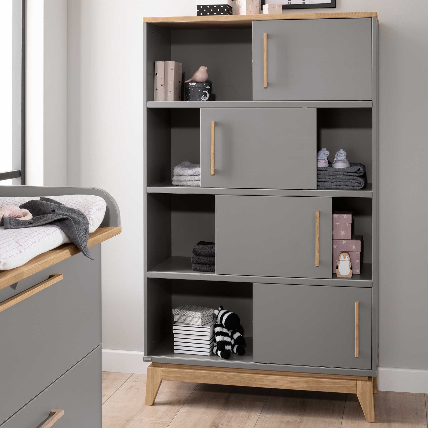 Trend im Kinderzimmer: hochwertige Möbel in nordisch inspiriertem Schiefergrau. Reizvolle Kontraste So sehen zeitgemäße Kinderzimmer aus: nordisches Design mit Liebe zum Detail und schönen Kontrasten in Schiefergrau und Eiche. Aus nachhaltiger Forstwirtschaft klimaneutral hergestellt. Spielbett, Hochbett, Etagenbett Ein Paradies für Mädchen und Jungs: Unterm Spielbett mit seiner Höhe von 120 oder 160 cm entsteht hinterm Vorhang-Set eine Abenteuerwelt. Unter das Hochbett mit 180 cm Höhe passt sogar ein Schreibtisch. Das Etagenbett bietet gleich zwei Schlafmöglichkeiten, mit Unterschiebebett sogar drei. Jugendbett in drei Breiten Richtig stylish wie für Erwachsene sieht die Traumliege in den Maßen 90, 120 und 140 x 200 cm mit ihren abgeschrägten Bettpfosten aus. Sie ist erhältlich in Schiefergrau kombiniert mit Eiche massiv oder komplett in Eiche massiv, mit oder ohne gepolstertem Betthaupt. So entstehen verschiedene Looks. Komfortable Schiebetürenschränke Die Schränke mit Schiebetüren sind in zwei Breiten erhältlich und bieten extra viel Platz. Das original PAIDI Slide System sorgt für höchste Sicherheit und schützt die Finger vorm Einklemmen. Die Türen schließen sanft und leise. Nordischer Wohlfühl-Look im Kinder- und Jugendzimmer.