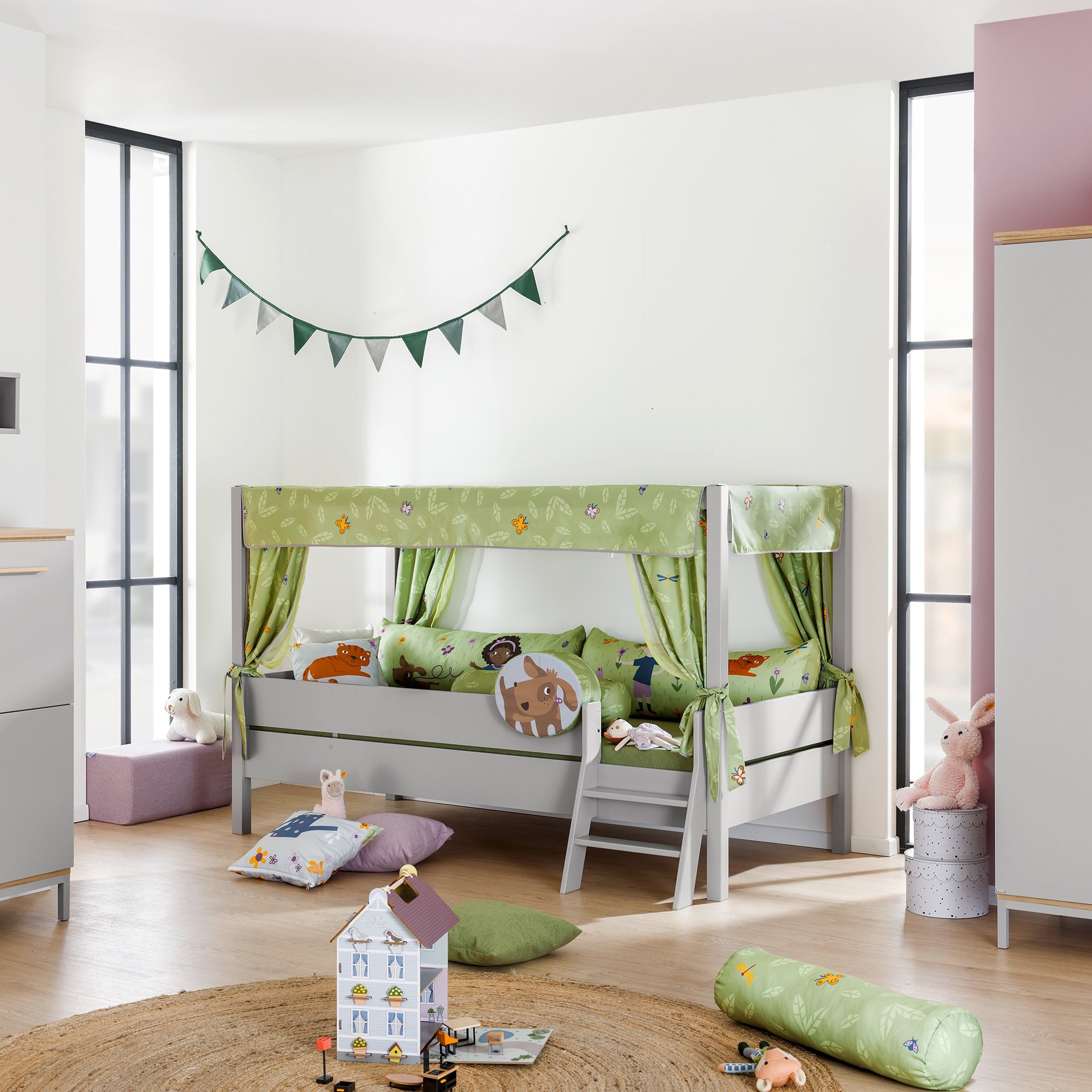 Ob Sicherheitsset, Umbauseiten, Kopfschutz – Paidi bietet vieles an Zubehör, zur Sicherheit und zum Wohle Ihrer Kinder. Gestalten Sie Ihr Kinderzimmer mit den passenden Paidi-Textilien in den verschiedensten Variationen: Ob Pirat, Wikinger oder Flower Power - der Fantasie sind keine Grenzen gesetzt. Neben den üblichen Vorhängen bietet Paidi verschiedene Zelte, Baldachin-Aufbauten und dazu passende Textilien an, die aus einem normalen Bett einen Kindertraum wahr werden lassen. Wenn das Paidi Bett an jüngere Geschwister weitergegeben wird, kann man im Handumdrehen mit den passenden Textilien ein neues Bett zaubern.