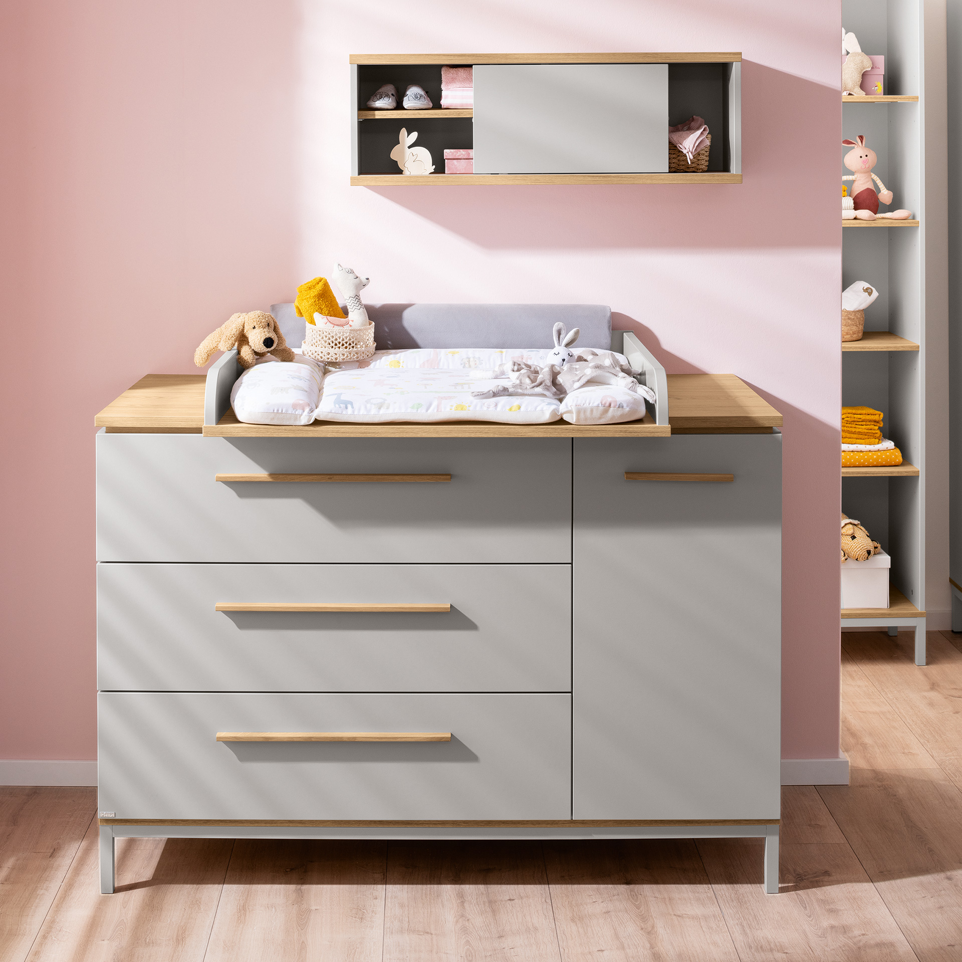 Gemütlichkeit neu gedacht – asymmetrische Hingucker. Babyzimmer in Kieselgrau mit Eiche-Montana Deine Begeisterung für die natürliche Optik und die gemütliche Ausstrahlung von Holzdekor verbindet sich nahtlos mit deiner Liebe zu klaren Linien und dezenten Farben? Benne vereint Kieselgrau mit Eiche-Montana in einer einzigartigen Möbelserie, mit der du stilsicher einen zeitgemäßen Wohlfühlort für dein Kind schaffst, der mühelos mitwächst. Erlebe mit Benne die ideale Symbiose aus Funktionalität, Ästhetik und Liebe im Babyzimmer.
