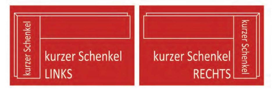 - Wahlweise kurzer Schenkel rechts oder links (Blickrichtung davorstehend)
