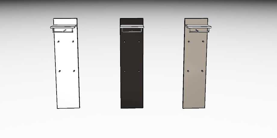 Verpackung / Montage: Alle Modelle werden montiert in einem Kolli kartonverpackt geliefert. Griffe und Garderobenhaken müssen angeschraubt werden. Garderobenpaneele müssen mit Hutablage und Bügel verschraubt werden. Montageskizzen werden mitgeliefert