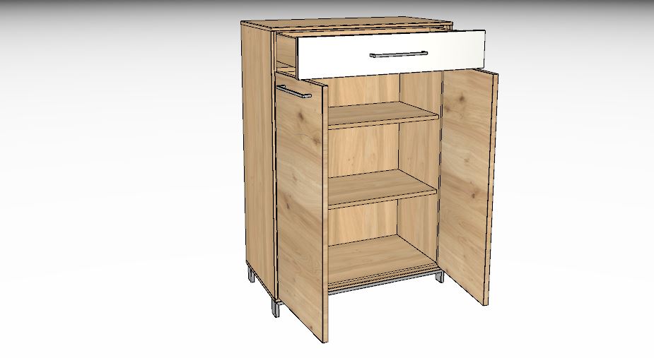 Oberfläche: Lackierung der Korpusteile und furnierten Frontelementen wird mit umweltfreundlichen und lösemittelfreien Lacken vorgenommen