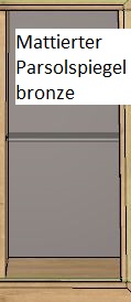 - Mattierter Parsolspiegel: Bei dem mattierten Parsolspiegel handelt es sich um ein bronzedurchgefärbtes Floatglas mit Spiegelbeschichtung, welches bei einer ganzflächigen Sandstrahlung die Spiegelung einbüsst. Hierbei handelt es sich um eine traditionelle Glasveredelung, durch die ein hochwertiger Matt-Effekt erzeugt wird.