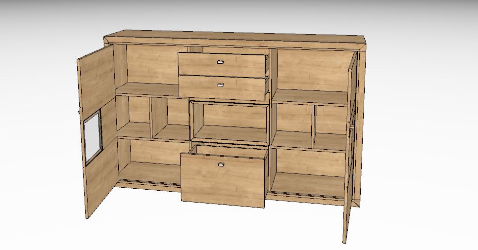 • 2 Türen mit Vitrinenausschnitt (4 Böden, 6 Fächer)