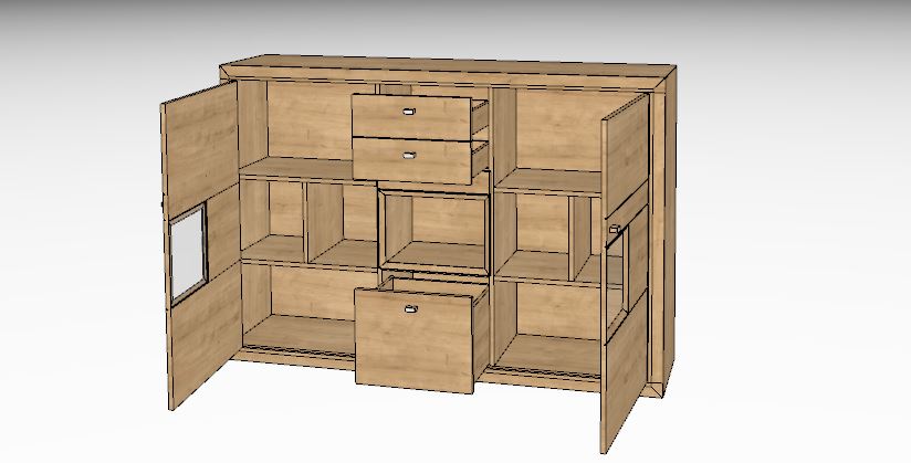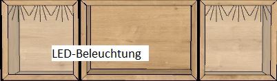 - 2 Türen mit Vitrinenausschnitt (4 Böden, 6 Fächer)