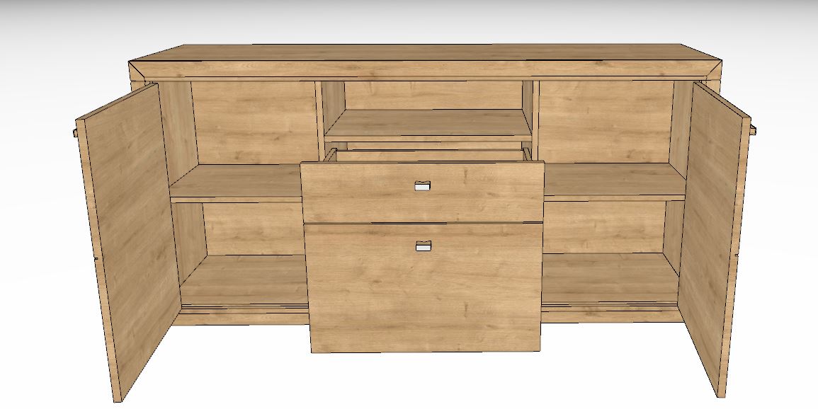 - Korpus und Front: Massivholz Wildeiche, soft gebürstet