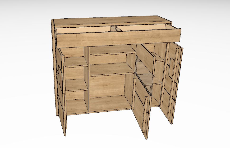 • Schubkastenzargen aus Eiche Massivholz, Schubkastenböden und Rückwände aus hochwertigem Sperrholz.