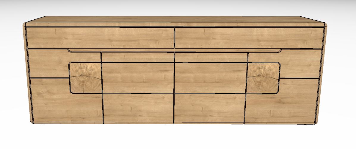 - Korpus und Front: Massivholz Wildeiche, soft gebürstet
