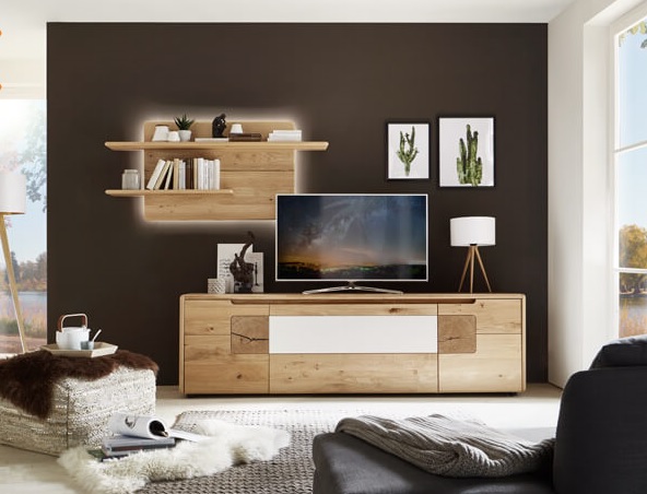 - Wohnwandkombination in Wildeiche massiv, soft gebürstet