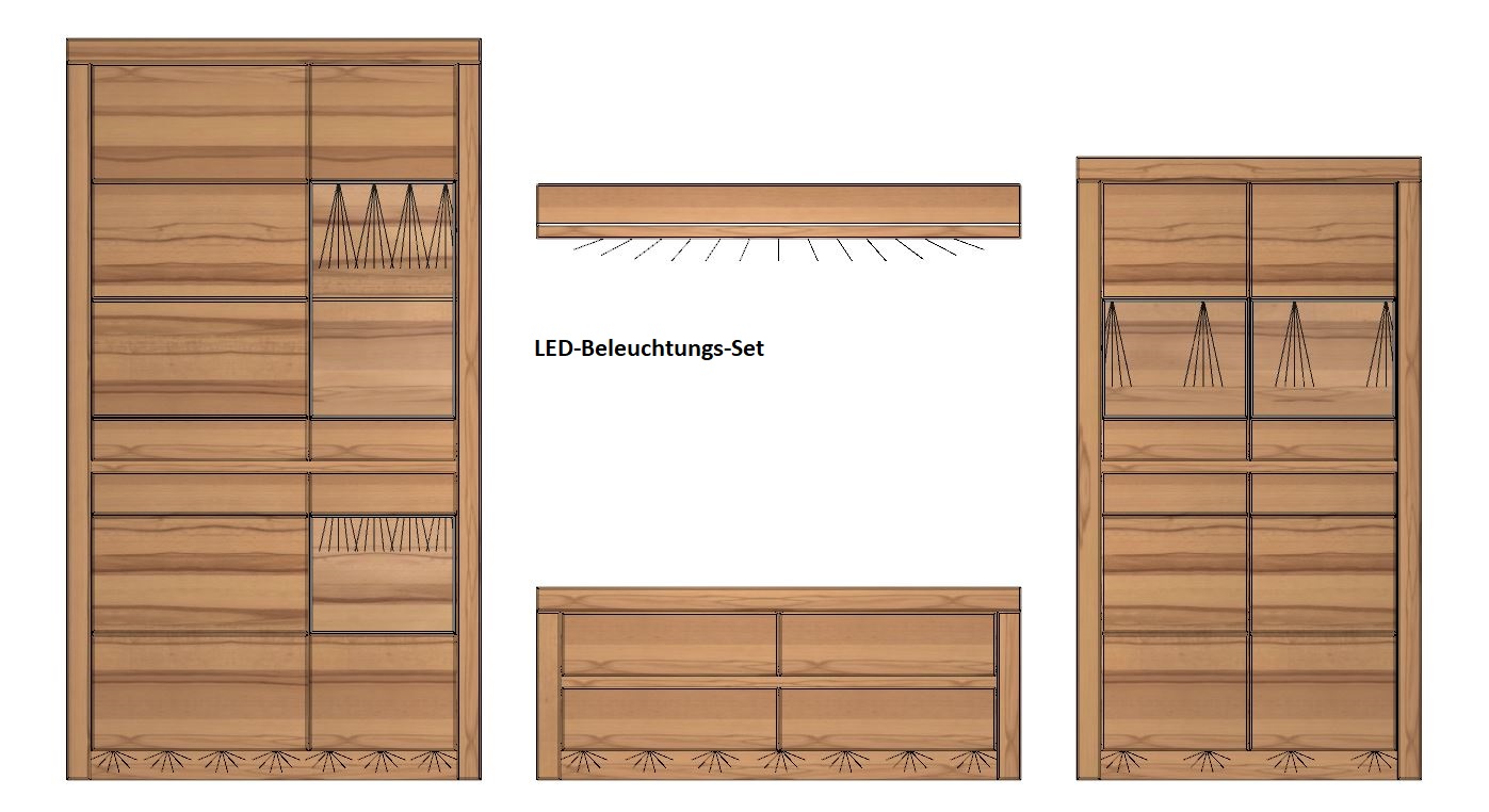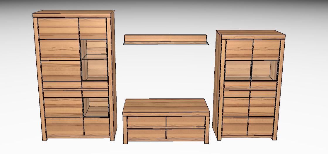 - 3006 = Zeilenschrank 5124, Medienelement 1355, Wandbord 0130, Zeilenschrank 4940