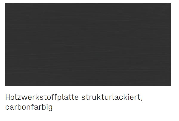 - Hirnholzträger: Holzwerkstoffplatte strukturlackiert, carbonfarbig