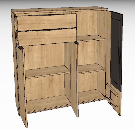• Korpus und Front: Massivholz Wildeiche, soft gebürstet