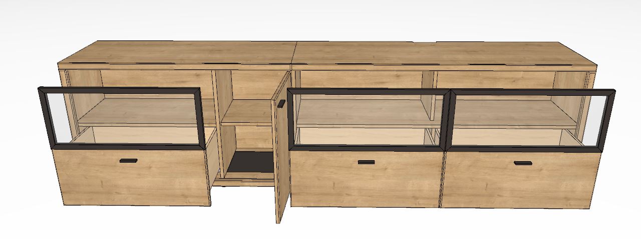 - 3 serienmäßige Vollauszüge mit Vitrinenausschnitten