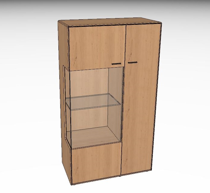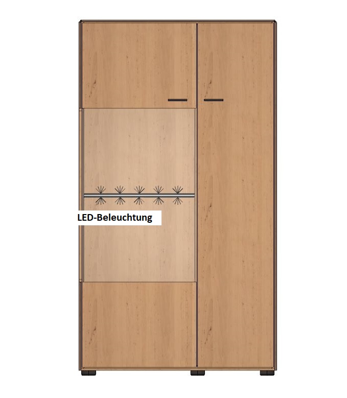 - Akzent für Vitrinenrückwände: Echtholzfurnier Erle natur, Echtholzfurnier Wildeiche oder Mattglas carbonfarbig