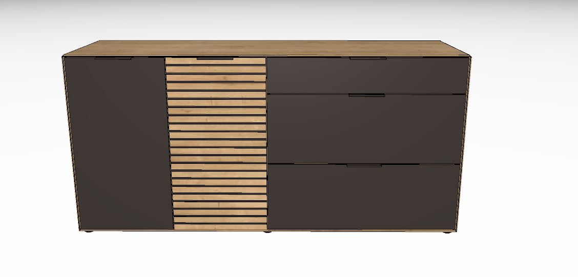 - Front: Massivholz Erle, natur oder Massivholz Wildeiche, soft gebürstet oder Mattglas carbon