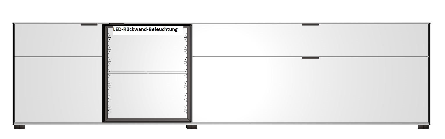 - Optional mit Metallkufen (+ H 11,0 cm), Rückwandakzent und LED-Beleuchtung